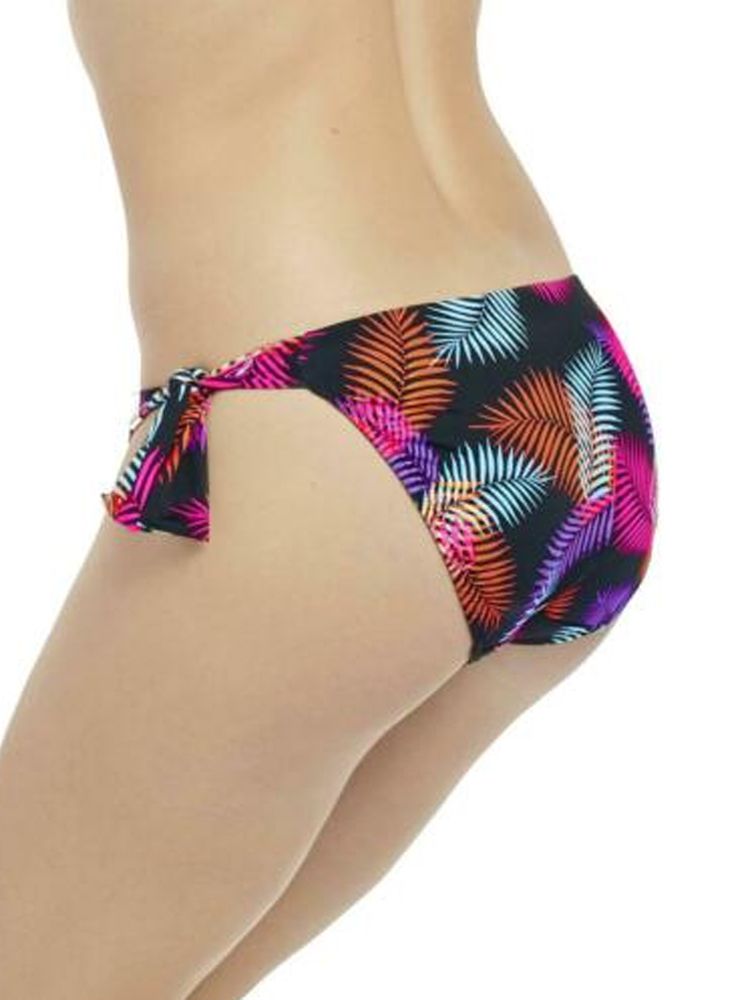 Make a splash at the pool in the Fantasie Talamanca swimwear collection, showcasing a vibrant palm leaf print that evokes a year-round summer feeling. These classic tie side bikini briefs sit low on the hips and provide medium coverage on the rear.