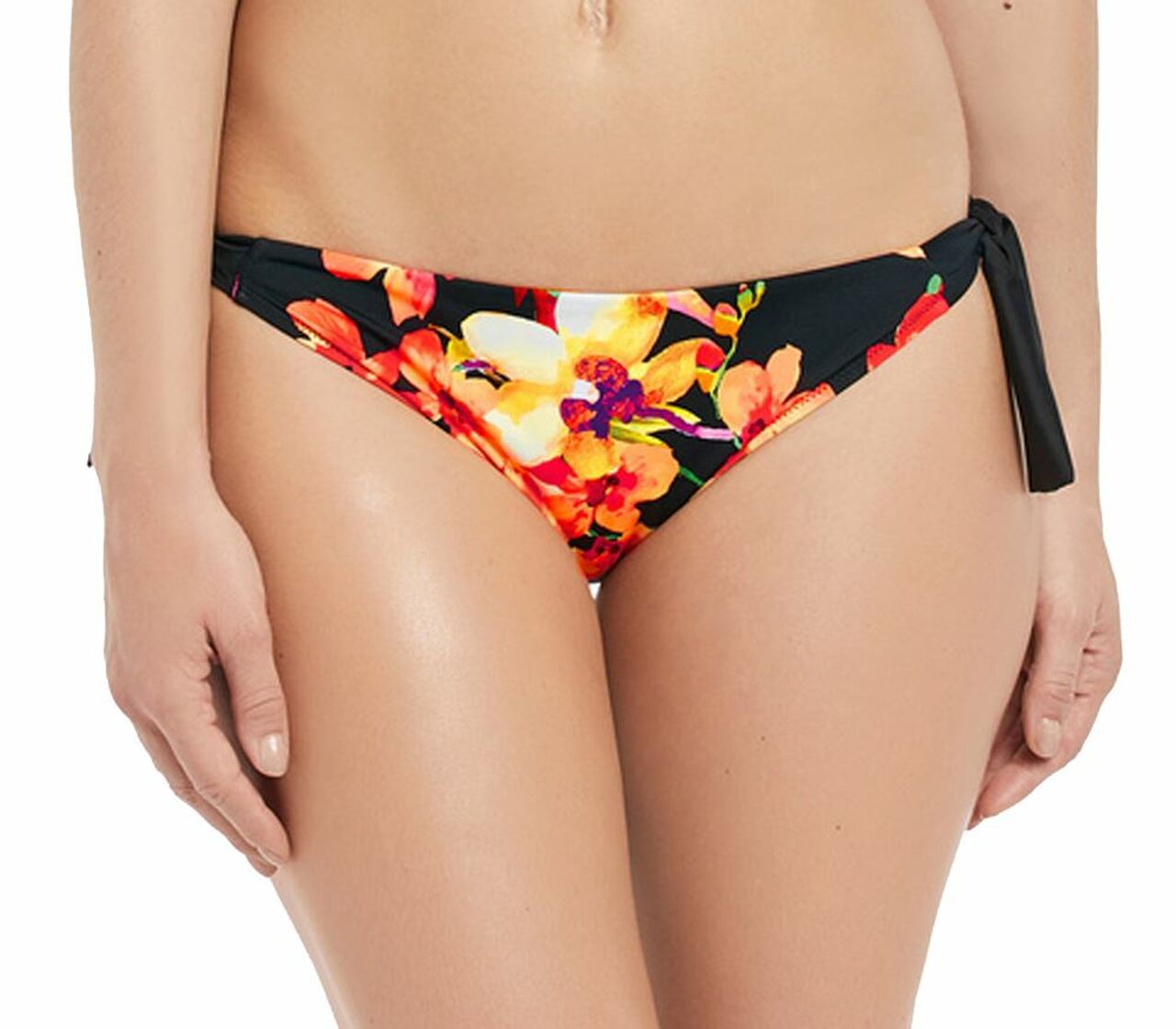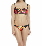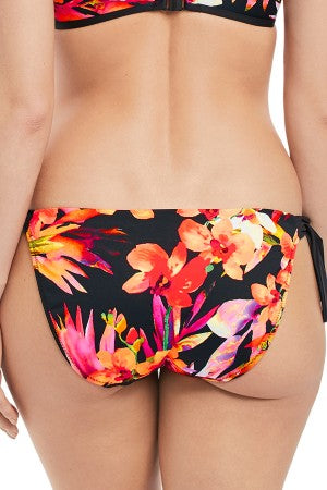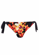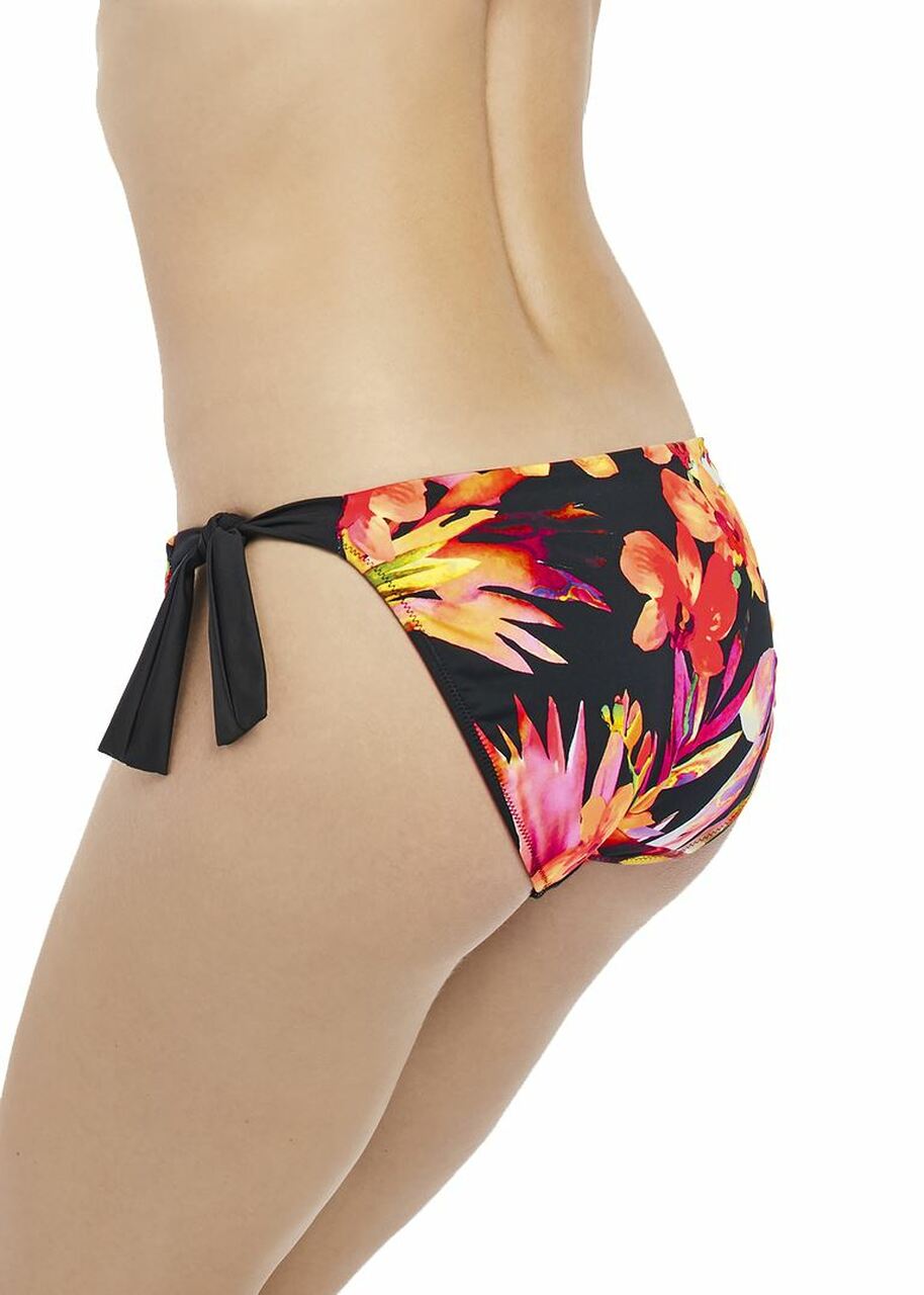 Fantasie Ko Phi Phi's lively floral tropics-inspired oranges, pinks and yellows on a black base captivate like dappled light through tropical foliage. These classic bikini briefs have the flexibility of fit through the contrasting black scarf side ties.