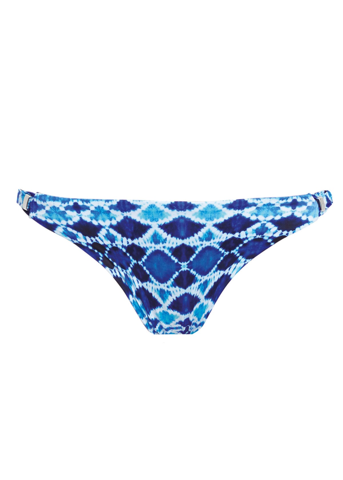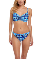 Step onto the beach in style with Fantasie's Tuscany Mid Rise Bikini Brief in Ink, featuring a Spanish-designed tie-dye print and metallic silver trim side details.