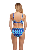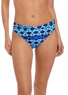 Uncover Fantasie's Tuscany Bikini Brief in Ink, offering medium coverage, a contemporary tie-dye print, and a twist cuff detail at the waist.