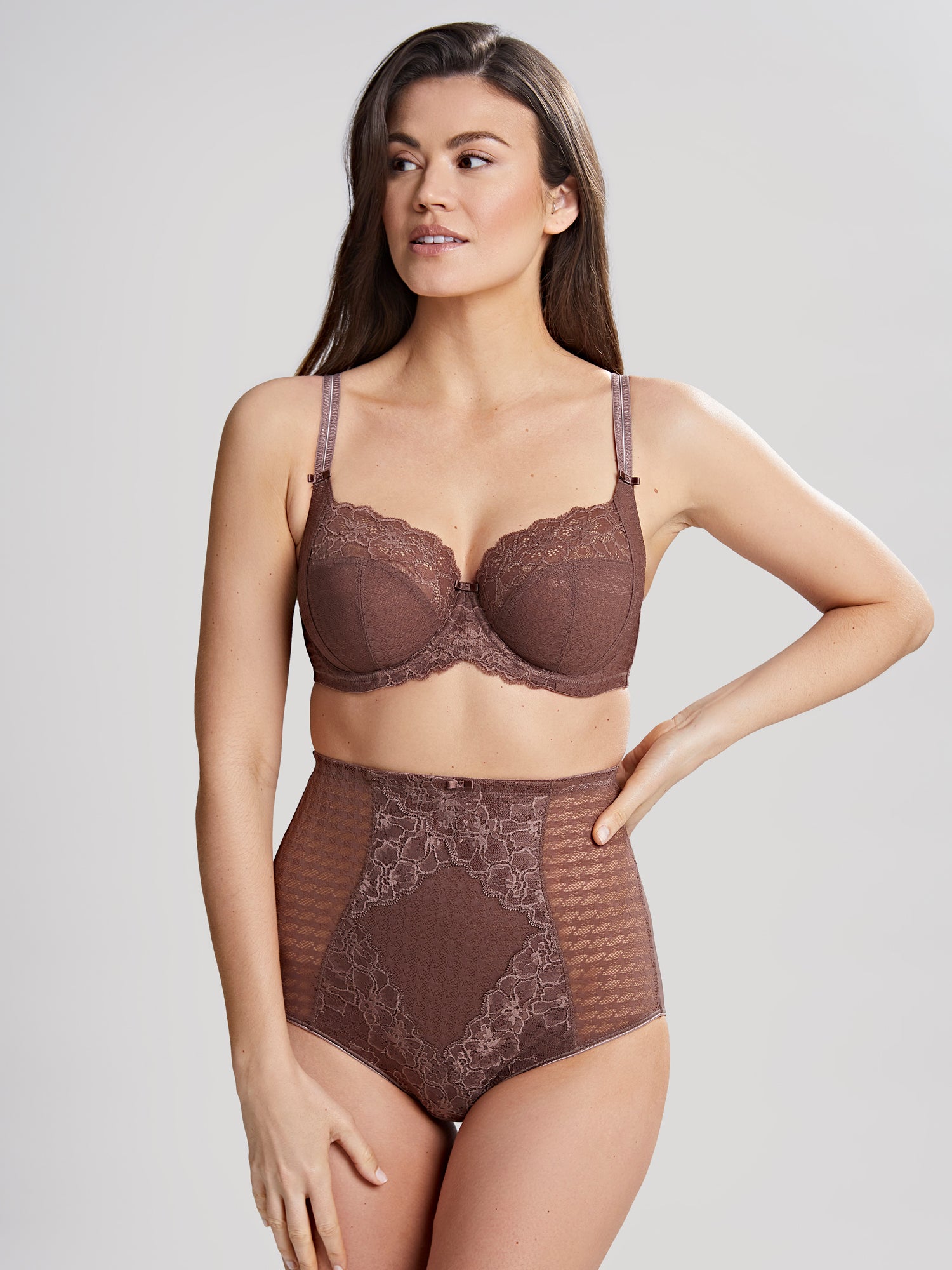 The Envy High Waist Shaping Brief is the perfect choice for creating a flattering shape under clothes. This style creates a beautiful look with a stretch floral lace centre panel, jacquard side panels and a mesh back with medium coverage. The high waist style cinches you in at the waist while the silicone elastic keeps a firm grip and prevents them from rolling. Try nude for ultimate versatility under any outfit.
