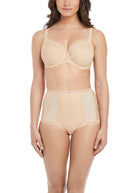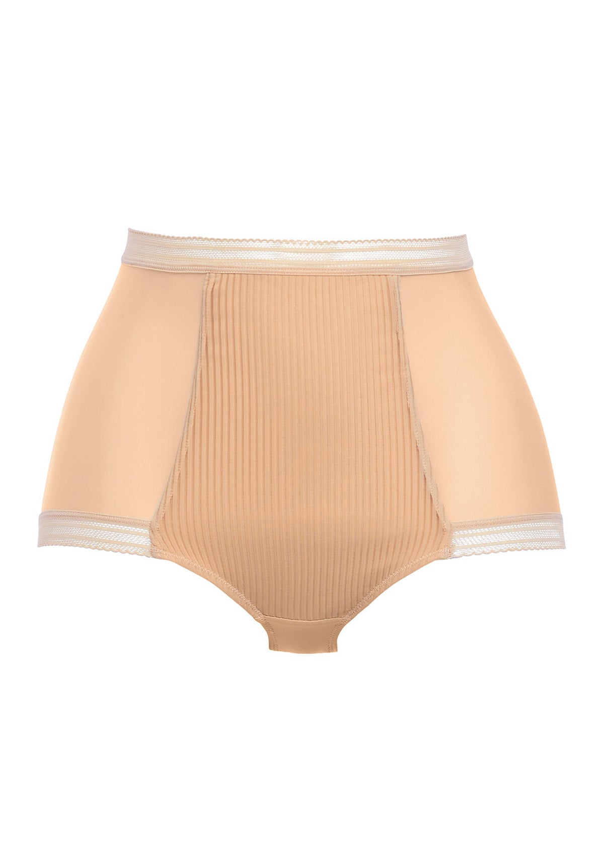 Complete the timeless Fusion lingerie collection with the High Waist Brief in Sand, designed from soft fabrics with a lined front panel for light control and a smoothing fit. Available in sizes XS - XXL.