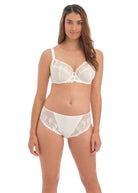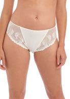 Fantasie's Anoushka Brief in Ivory features premium soft handle fabric with clean cut scallop detail providing a smooth silhouette with no VPL. The lined front panel offers modesty and comfort, while beautiful Austrian designed embroidery adds elegance.