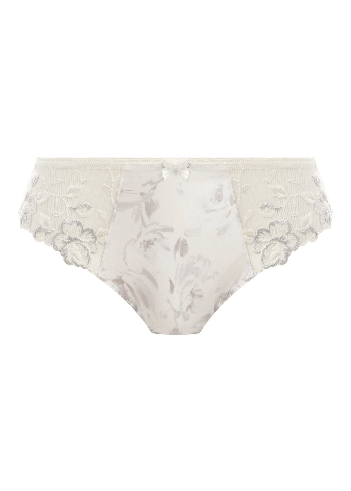 The effortlessly luxurious Caroline Brief showcases Swiss-designed floral embroidery in a delicate two-tone silver and Pearl colourway, crafted with soft fabric for ultimate comfort.
