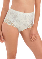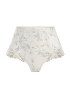 Flatter your figure with the High Waist Briefs of Fantasie's Caroline collection. The subtle tones of silver floral designs are showcased on a beautiful Ivory base and a lined tummy panel provides control and smoothing.