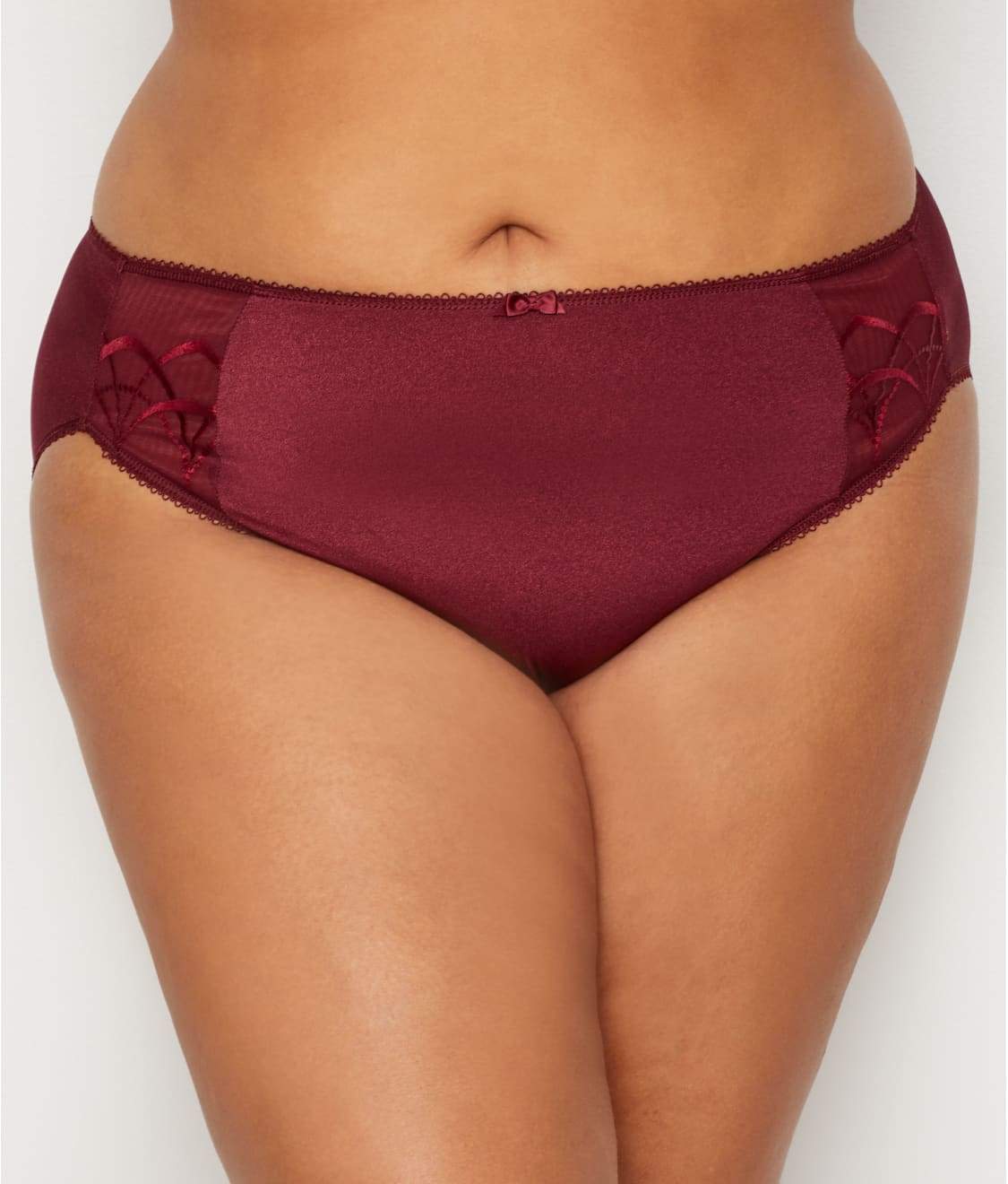 Discover beauty and comfort with the Cate Brief in a Cabernet shade. The classic style is cut from smooth stretch fabric that has a subtle sheen, alongside sheer embroidery side panels to complete the look.