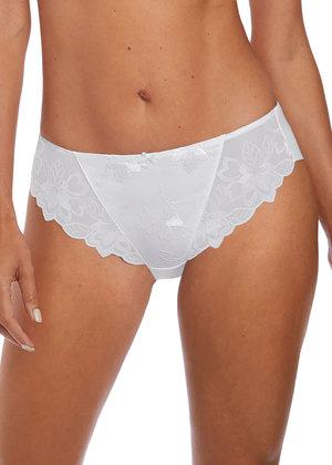 Fantasie’s Leona Brief in White is finely crafted from a soft clean cut fabric to give a smooth finish and second skin feeling with no VPL. Adorned with delicate embroidered side panels for an elegant look, available in sizes XS - XXL.