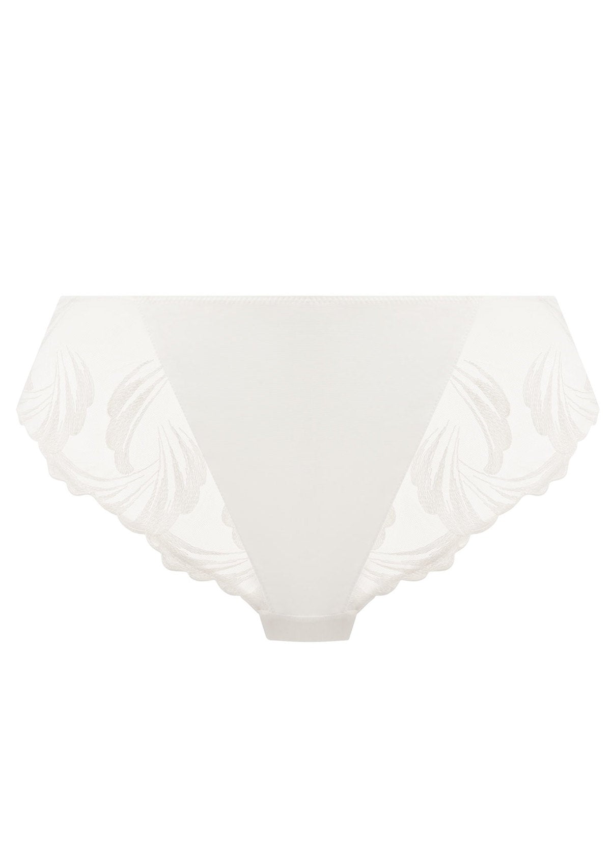Fantasie's Anoushka Brief in Ivory features premium soft handle fabric with clean cut scallop detail providing a smooth silhouette with no VPL. The lined front panel offers modesty and comfort, while beautiful Austrian designed embroidery adds elegance.
