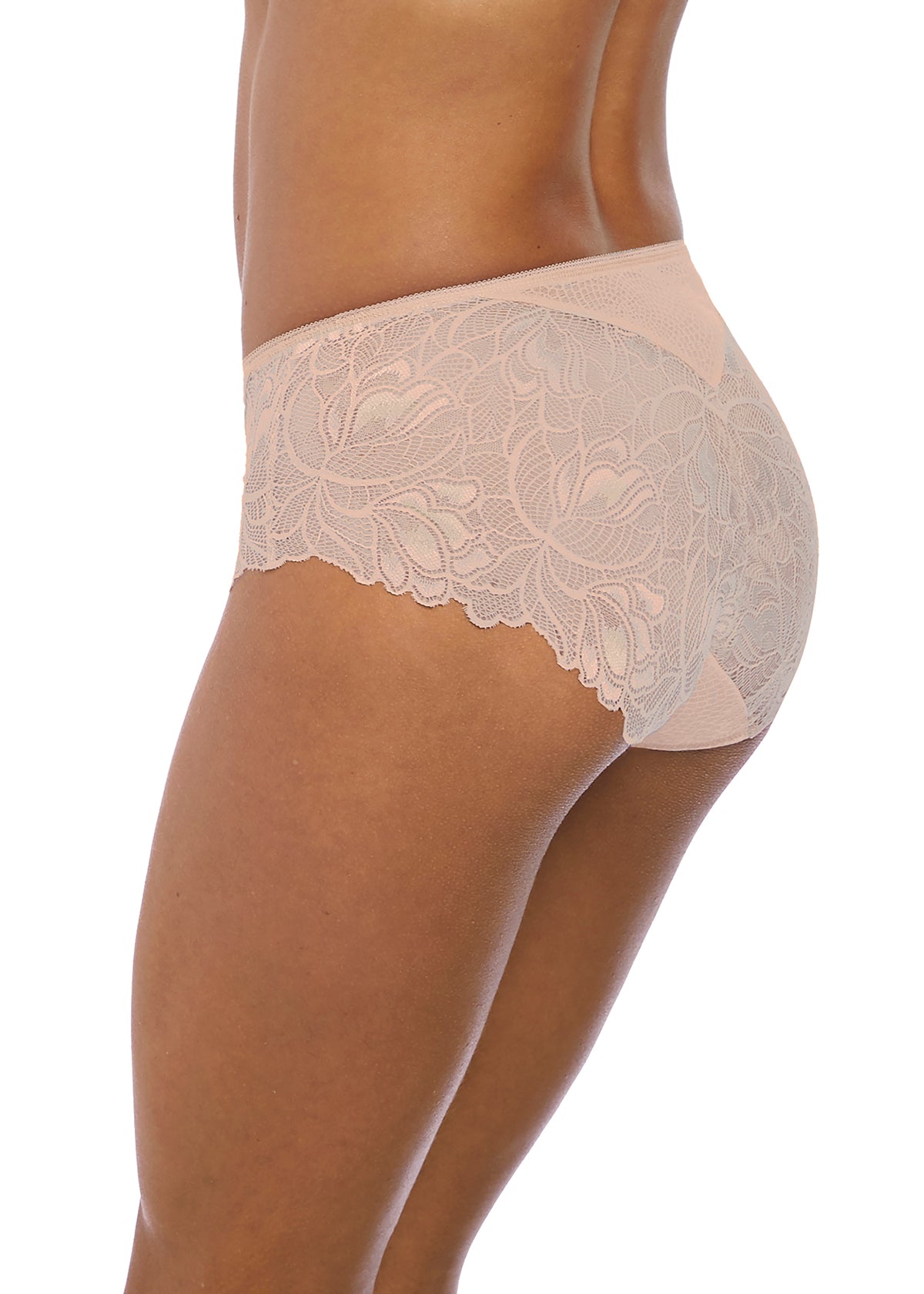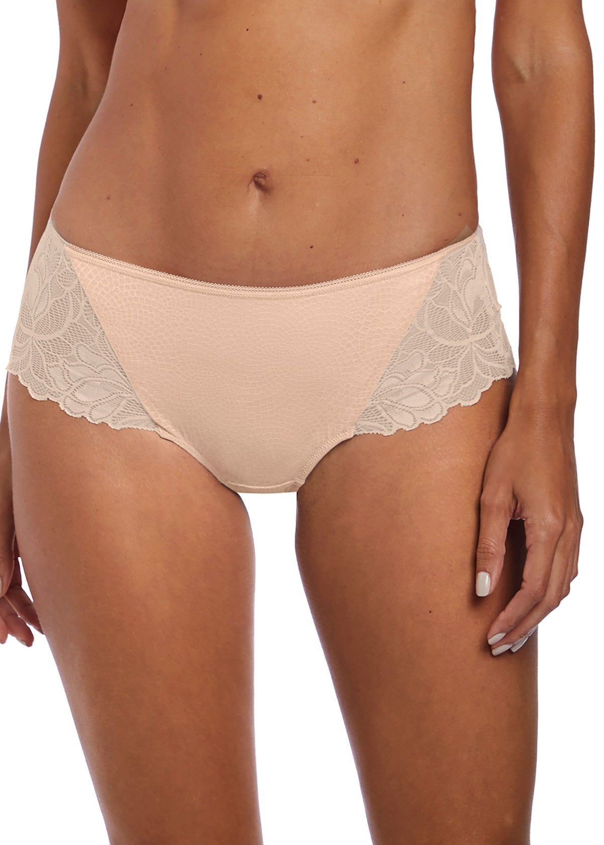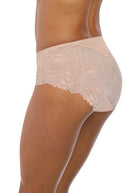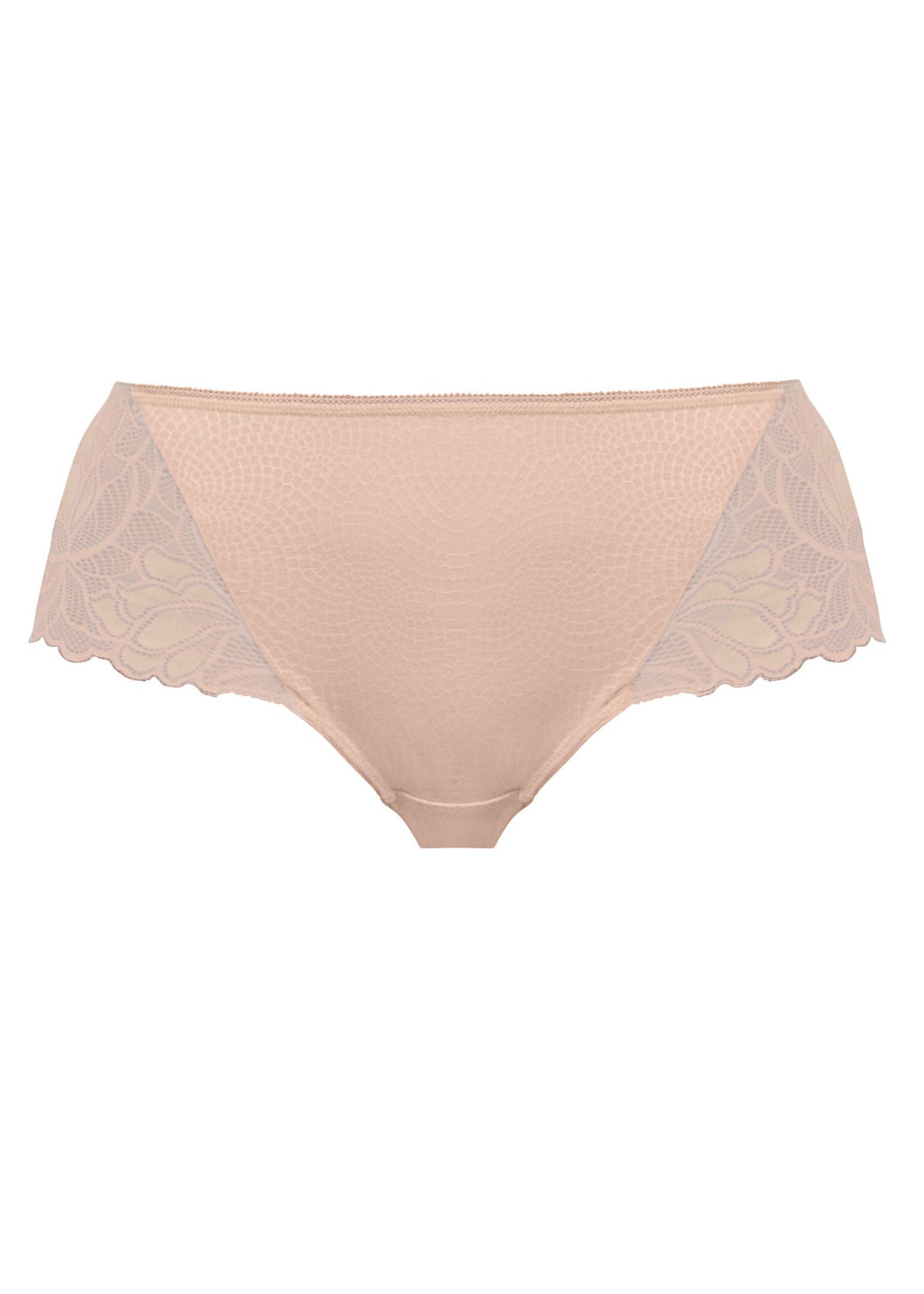 The Fantasie Memoir Short in Natural Beige features soft feminine lace through the front sides and a contemporary lace back. Complete with a fully lined front for modesty.
