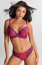 Complete your sultry Ana set with the brand new Ana thong in a fresh Orchid/Indigo colour, with soft matching lace along the hips for a flattering fit, and intricate satin bow detail, this co-ordinate is just what you need to finish your lacy look.