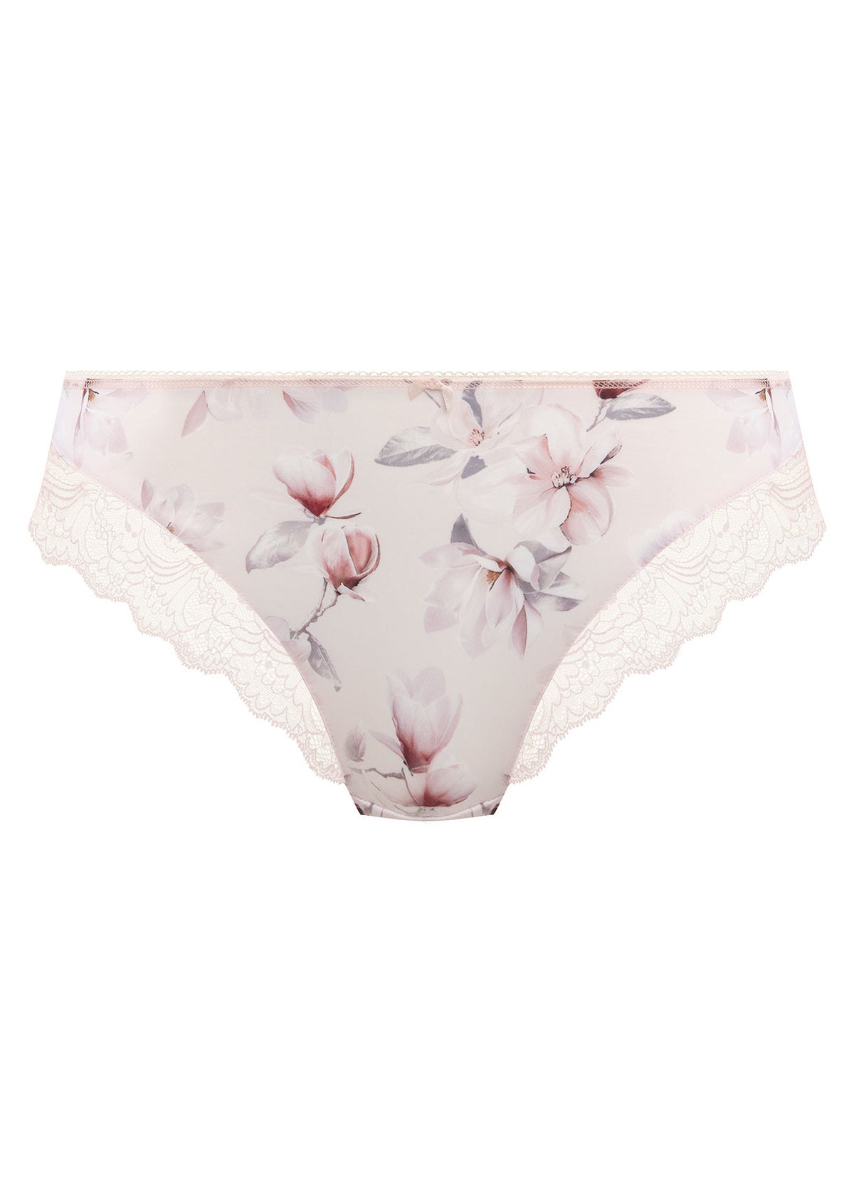 Discover our heavenly Lucia collection, including the super soft Brief adorned in pink magnolia flowers with highlights of silver-hued leaves, and complete with stretch lace for an elegant finish.