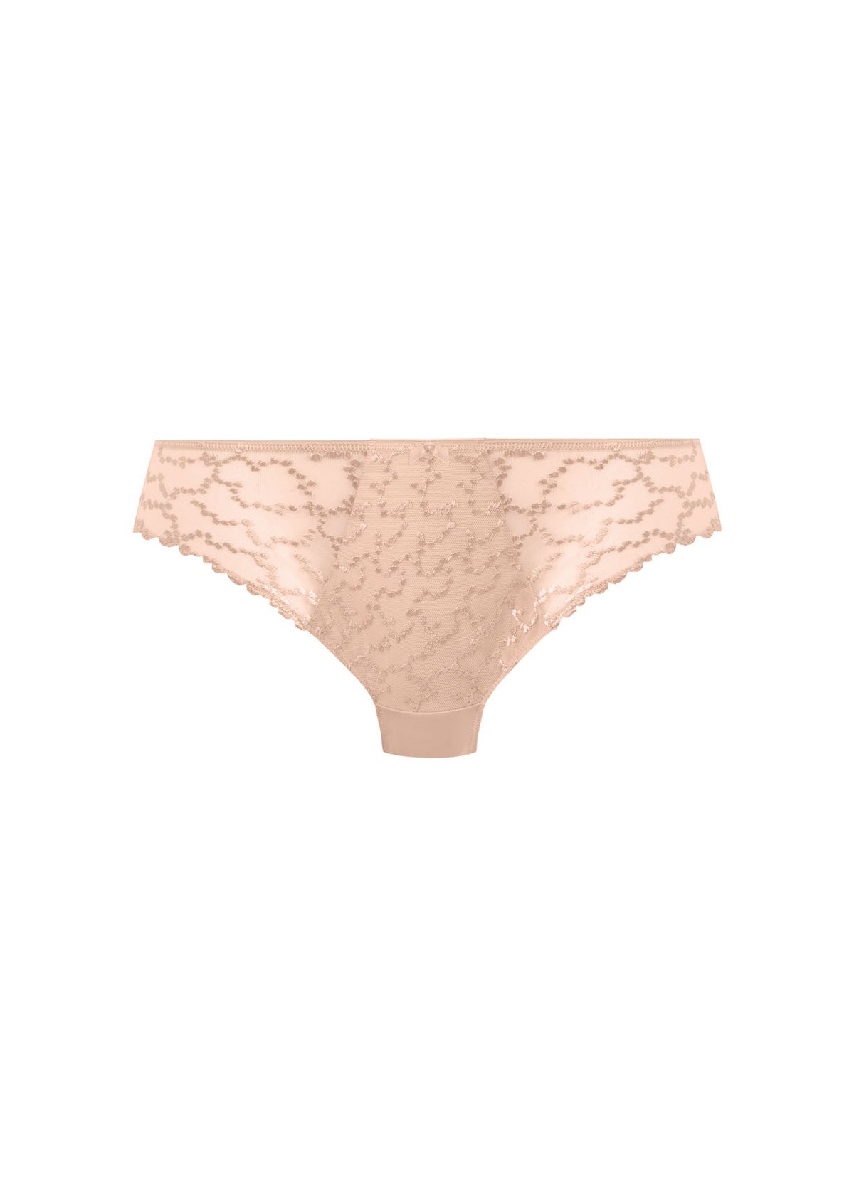 Complete your look with Fantasie's Ana Brief in Natural Beige, showcasing beautiful Swiss-designed embroidery and a lined front panel for comfort. Crafted from a soft fabric with a scallop edge detail for no VPL under clothing.