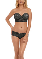 A unique design to the Freya Wilder collection, the Moulded Bustier provides smooth rounded shape through padded cups and soft boning for extra support. The animal print lace overlay perfectly complements the delicate black bow and gold charm detail. Detachable, fully adjustable straps make this style perfect for every occasion.