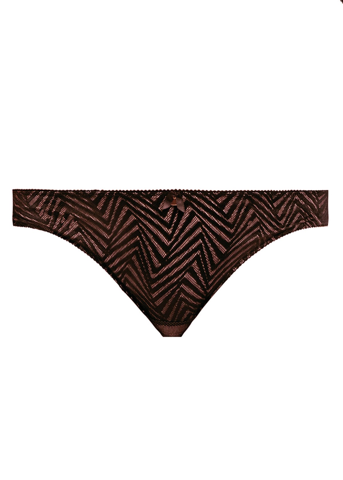Feel amazing in Freya's Escape Lace Brief, the luxurious design showcases stunning geometric lace and scalloped details on contrasting pink lining. Uncover pretty bows and rose gold charm details that perfectly completes the look.