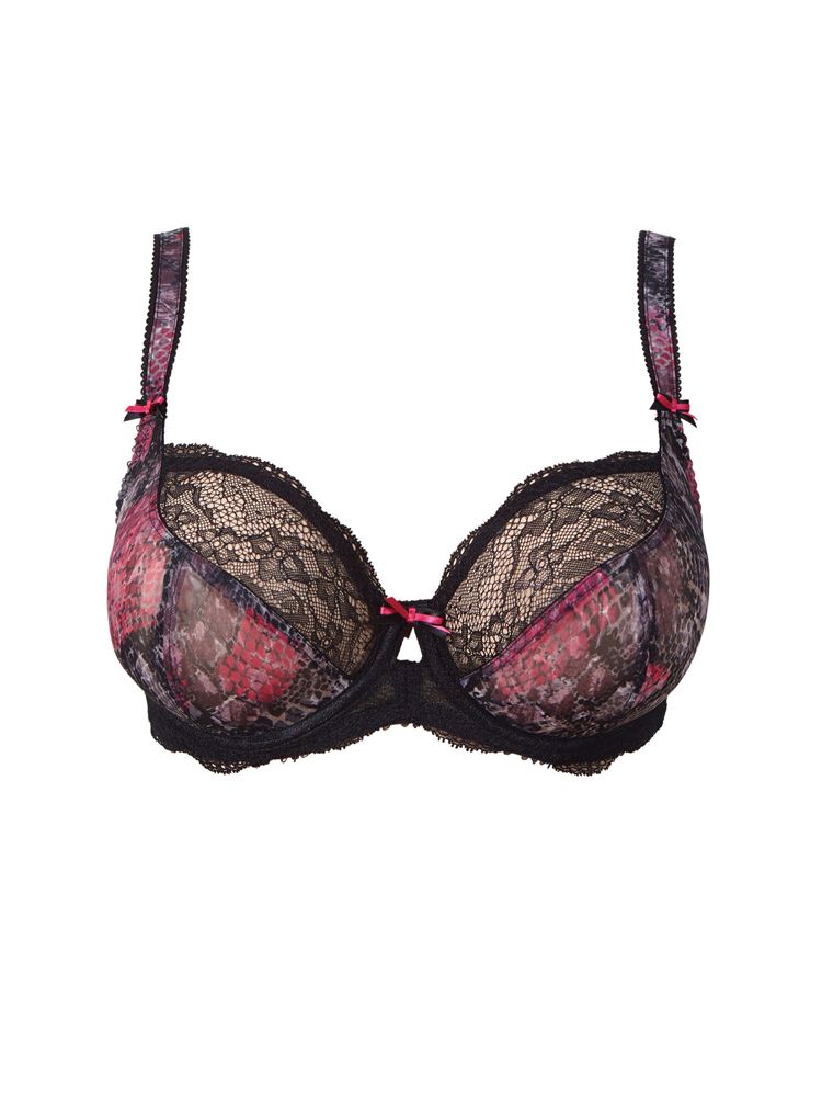 Rebel Rebel by Freya this sexy bra offers great support and shape. The semi-sheer fabrics and a rich black see-through lace top cup add a fashionable edge to this range. Underwired cups are non padded with fully adjustable straps finished with cute bows