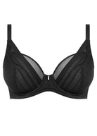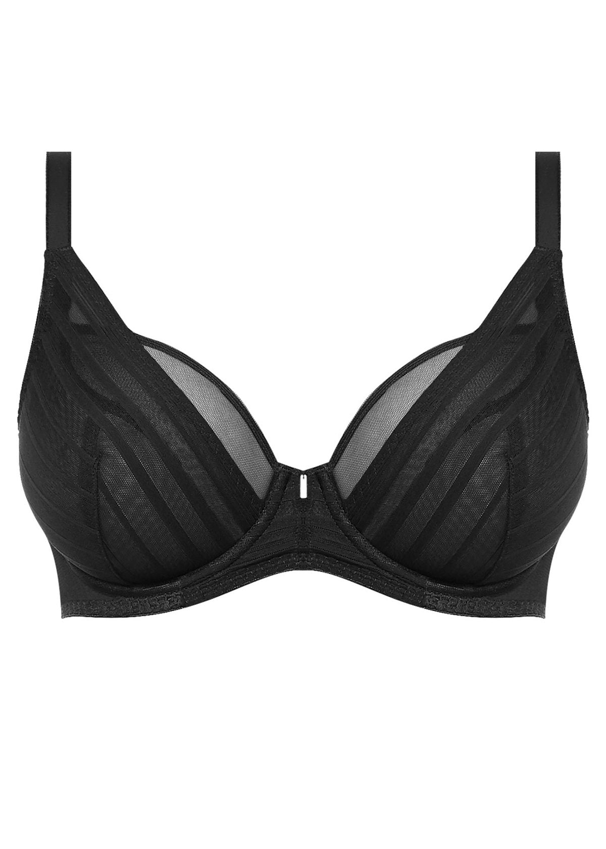 Freya's Cameo collection will ensure you feel chic in a contemporary stripe mesh design in an everyday black colourway. The High Apex Bra showcases a flattering plunge neckline and semi-sheer fabrics for a light look, alongside forward shape and uplift in cup sizes C - H, finished with a silver bar trim.