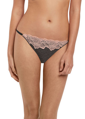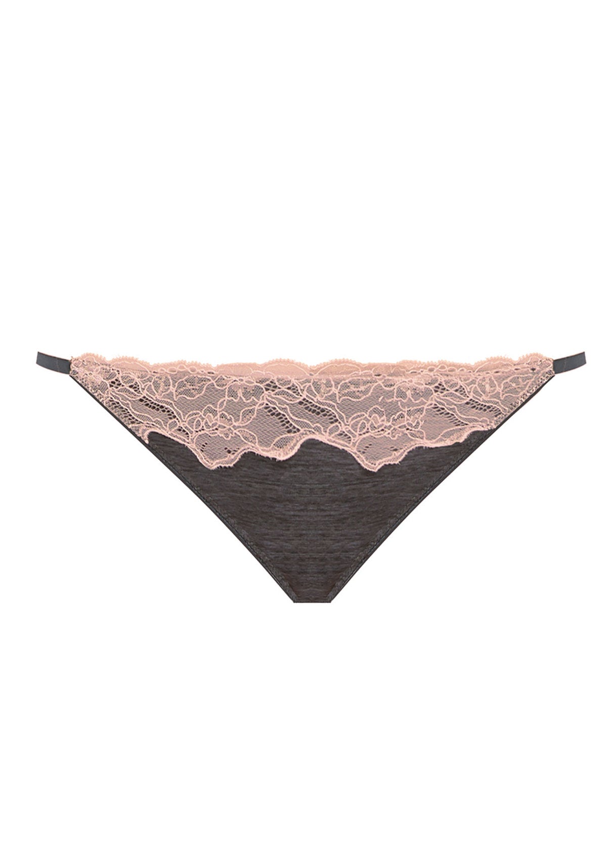 Let the Chi Brief be an essential additional to your lingerie drawer this season, designed with stylish strappy tanga sides and a blush lace trim. Available in a Charcoal colourway in sizes XS-XL.