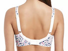 Discover Freya Make Tracks lingerie collection, featuring a striking navy and pink animal print set against a fresh white background. The balcony bra provides superb support, with a three-section cup and stretch lace at the top for a comfortable fit and a more rounded shape, complete with fully adjustable straps.