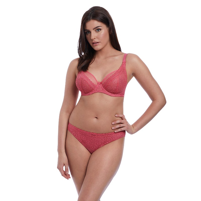 Indulge in the alluring Love Note Range by Freya. Adorned with rich crochet style lace and finished with on-trend designs, this collection brings a romantic and girly twist to luxury lingerie. Featuring underwired cups with a stretch outer cup, creating lift and forward projection. The high apex style adds both support and comfort, whilst a beautiful grosgrain bow adds a lavish feel to this pretty bra. Finished with the fully adjustable straps for an individual fit. Pairs perfectly with the matching coordinates from the Love Note range.