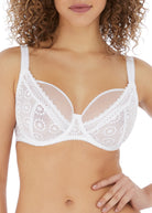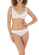 Indulge in the alluring Love Note Range by Freya. Adorned with rich crochet style lace and finished with on-trend designs, this collection brings a romantic and girly twist to luxury lingerie. Featuring underwired cups with a stretch outer cup, creating lift and forward projection. The high apex style adds both support and comfort, whilst a beautiful grosgrain bow adds a lavish feel to this pretty bra. Finished with the fully adjustable straps for an individual fit. Pairs perfectly with the matching coordinates from the Love Note range.