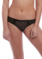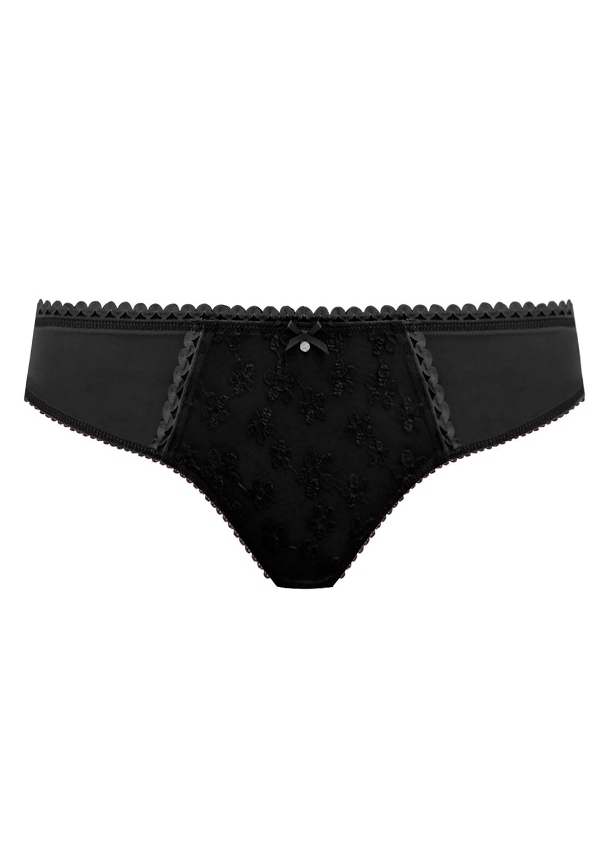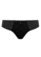 The Unchained luxury thong by Freya features an embroidered front panel in a classic black colourway. Decorative trims along the waist and a lace up ribbon detail at the back perfectly completes the look. Available in sizes XS - XL.