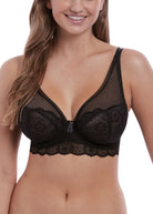 The Expression High Apex Bra makes a statement in a sophisticated black colourway, featuring striking crochet look lace on the cups and around the body for an on-trend style. Stretch mesh top cups provide ease of fit and creates a rounder shape in cup sizes C - G.