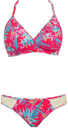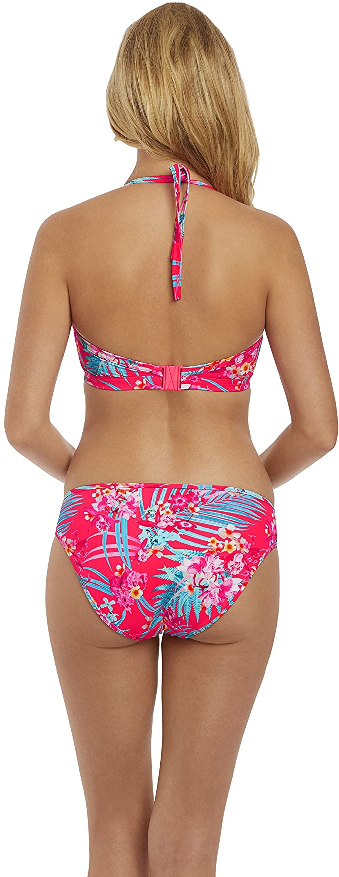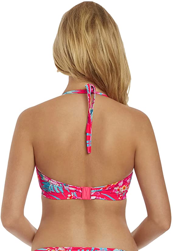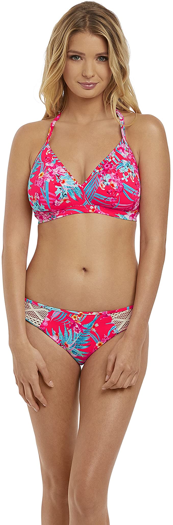 Freya's Wild Sun Halter Bikini Top combines a vibrant botanical print with on-trend crochet details. The low plunging neckline offers less coverage, while lined cups create perfect shape and support.The soft triangle bikini top features a tropical palm leaf and botanical flower print with lightly padded cups to create a rounded shape and offer perfect support, while the cross over neck provides enhanced cleavage