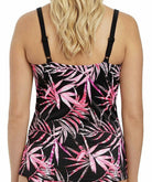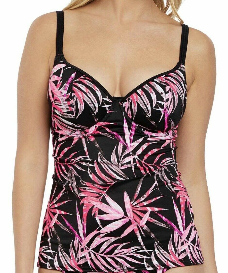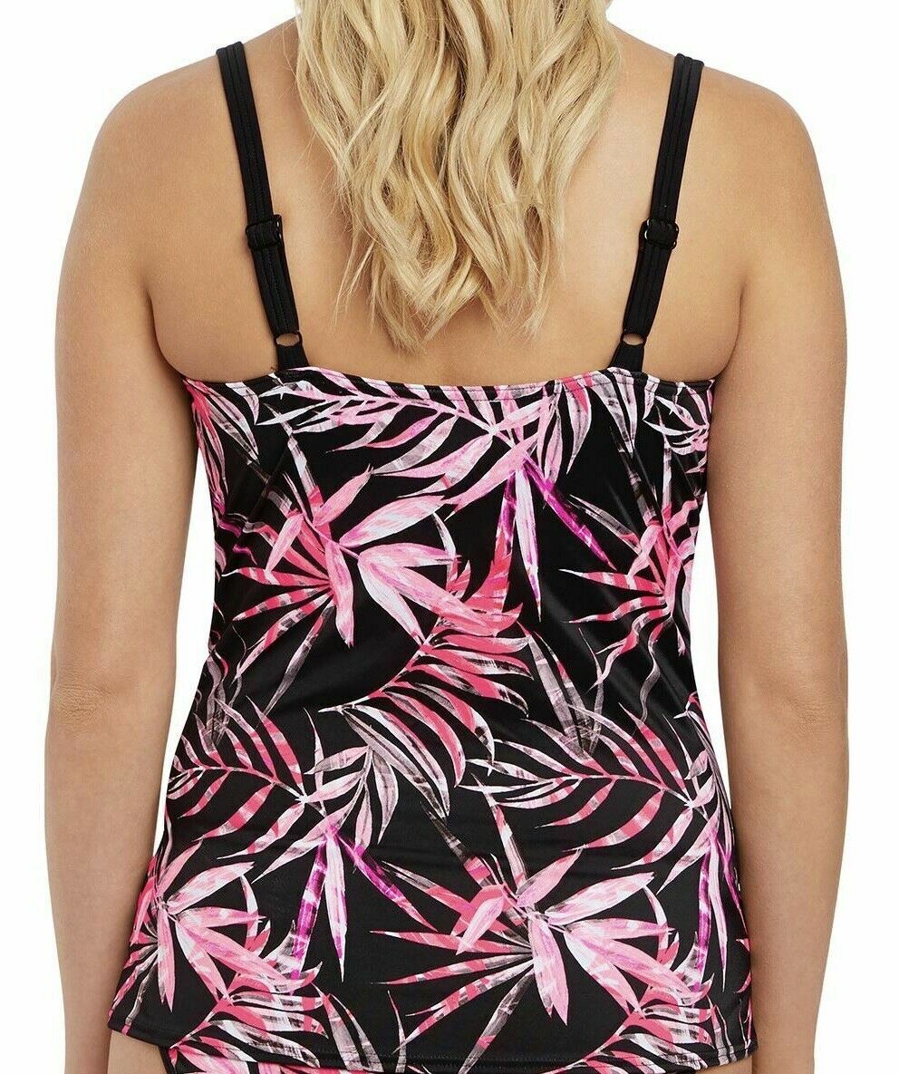 Freya's Sunset Palm Tankini Top mixes a hot pink palm print with black mesh details for a tropical on-trend design. The low plunging neckline offers less coverage, while lined cups create perfect shape and support.