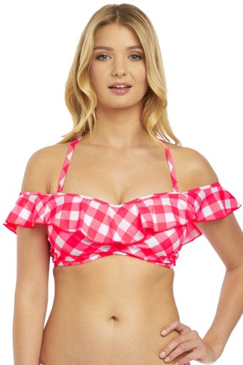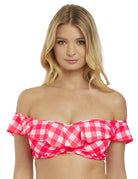 Totally Check Bardot Bikini Top - Tropical Punch