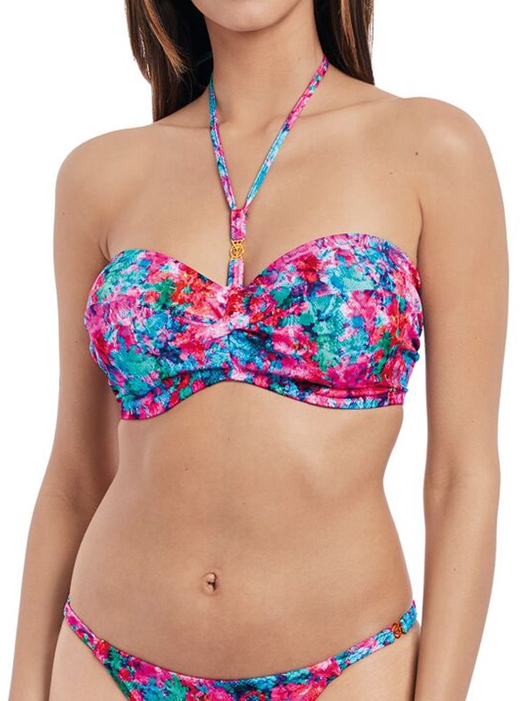 This bandeau strapless bikini top features lightweight padded cups for more of a defined shape and extra support for all-day wear. The halter neck straps can be tied around the neck in a bow or at the front allowing for the perfect fit.