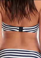 Combining a classic nautical stripe pattern with a snug fit and modern design, this collection ensures you'll look and feel fabulous by the pool. This bikini top is underwired and is also lightly padded with foam cups to offer a well rounded shape and additional support. In addition, this bikini top fastens at the back with a plastic clasp and features detachable, fully adjustable multiway straps that can be crossed over at the back and shoulder.
