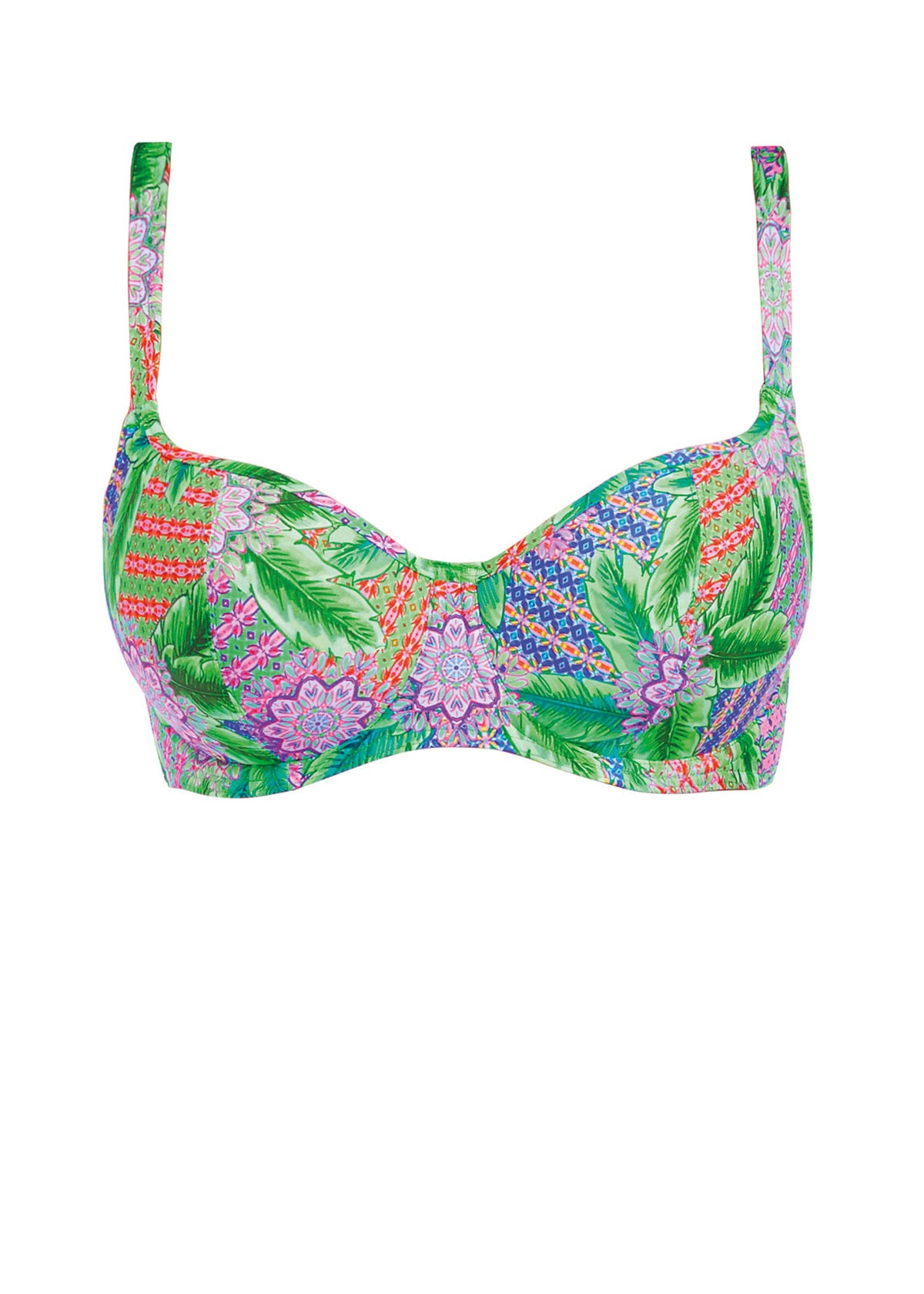 Turn up the heat with the Zamba Sweetheart Padded Bikini Top in a Multi colourway, designed in a zesty palm leaf print to create a standout swimwear look. Featuring lightly padded foam cups for shape and support for both swimming and lounging by the pool, while a flattering sweetheart neckline offers uplift.
