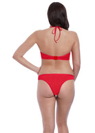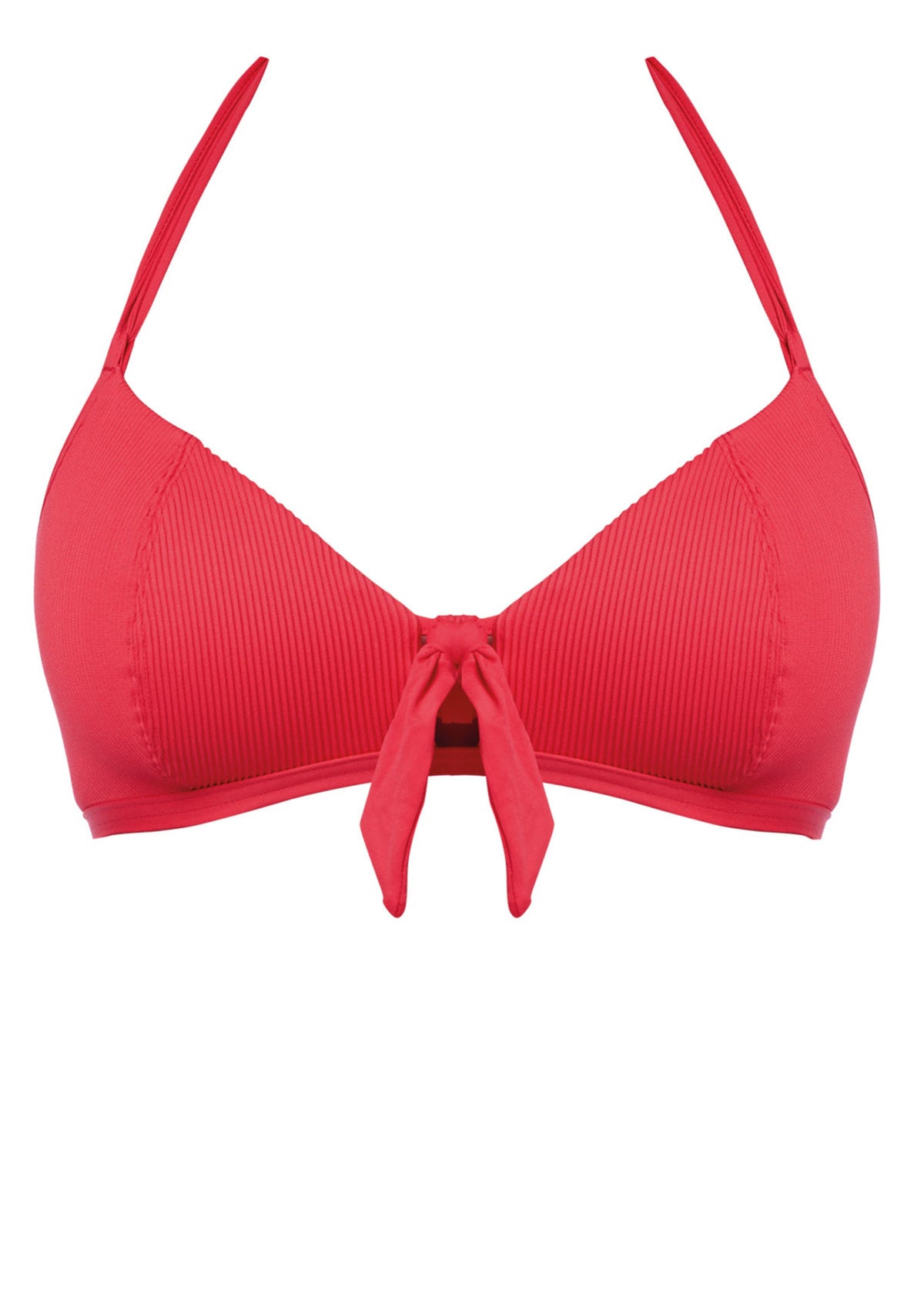 When it comes to a contemporary athleisure inspired styling, the Nouveau Soft Triangle Bikini Top has you covered in a stunning shade of Red. The comfortable style features skinny halter neck ties and lightly padded cups for rounded shape and support in sizes C - FF, finished with a bunny knot tie to complete the look.