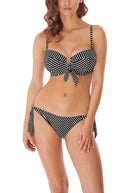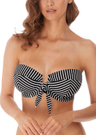 Hit the beach in style with the stunningly classic Black Bandeau Bikini Top, the detachable straps allow you to effortlessly change your style, while the lightly padded foam cups provide a smooth rounded shape and support. An open centre front and bunny knot tie completes the retro look.