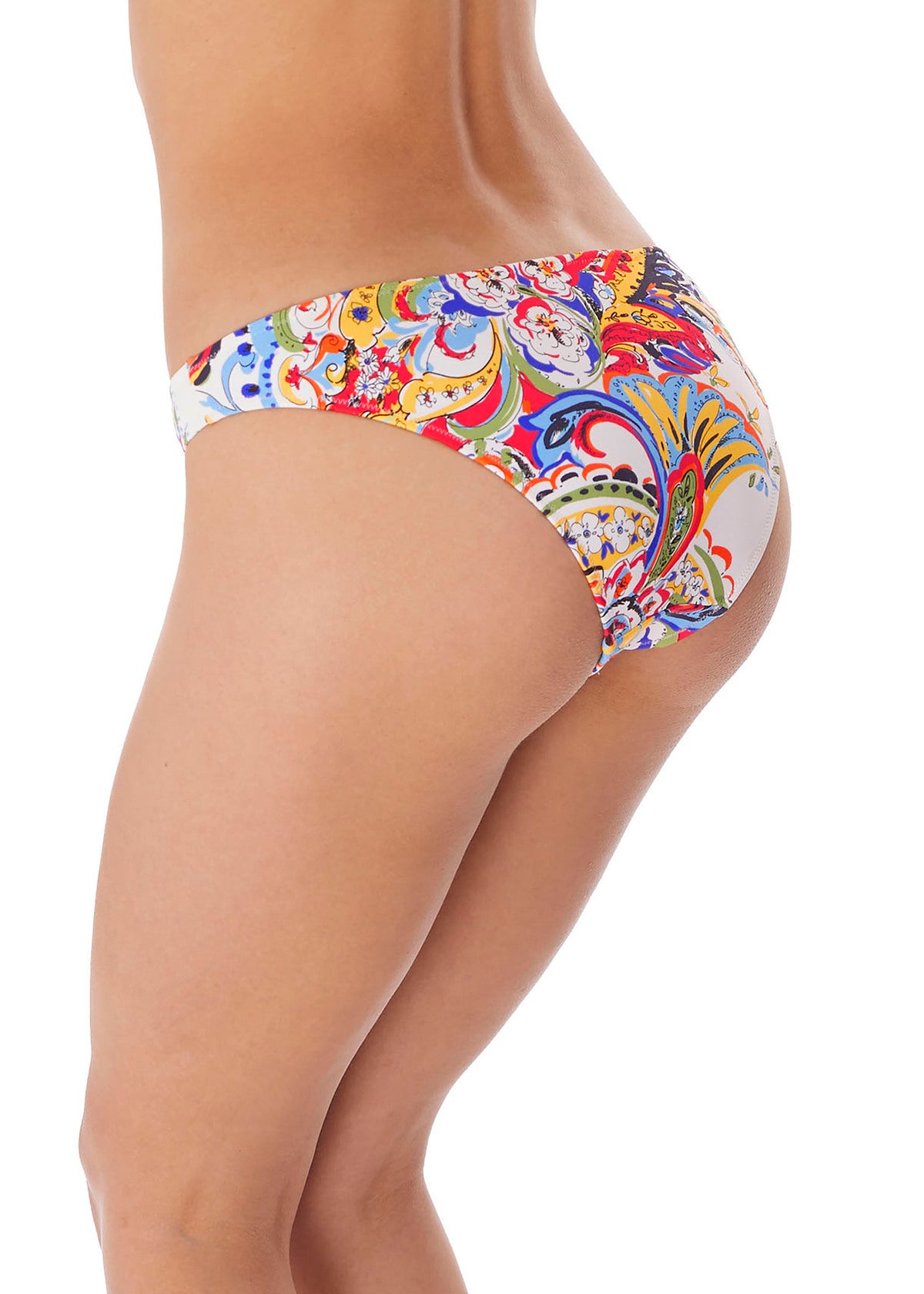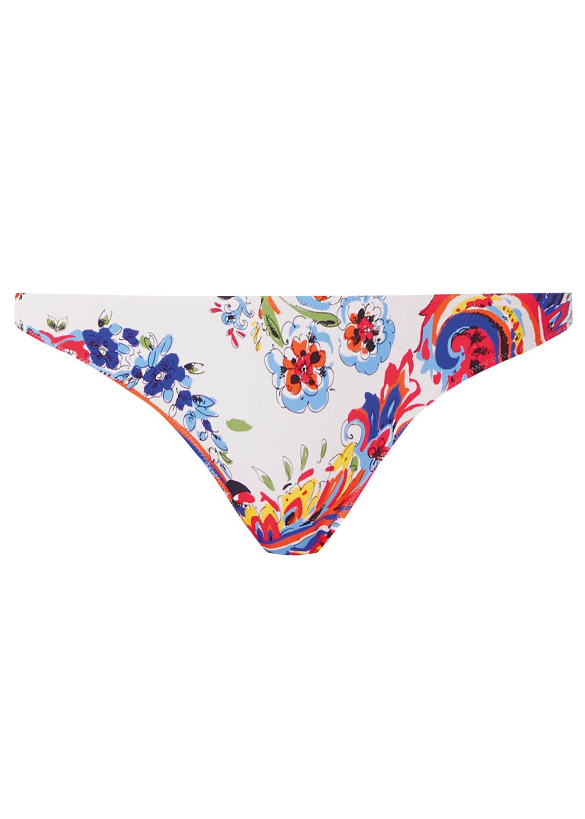 Escape to the beach in Freya's Rococo Italini Bikini Brief coordinate, showcasing a paisley print in an eclectic colour palette. The Italini style sits low on the hips with a fashionable cutaway back for less coverage. Available in sizes XS - XL.