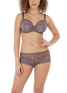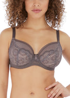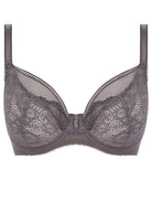 Feel transformed in the luxurious Expression Plunge Bra, showcasing statement crochet look lace and decorative trims in Shark colourway. The low centre front creates a revealing neckline, while stretch mesh top cups offer ease of fit and a rounder shape.