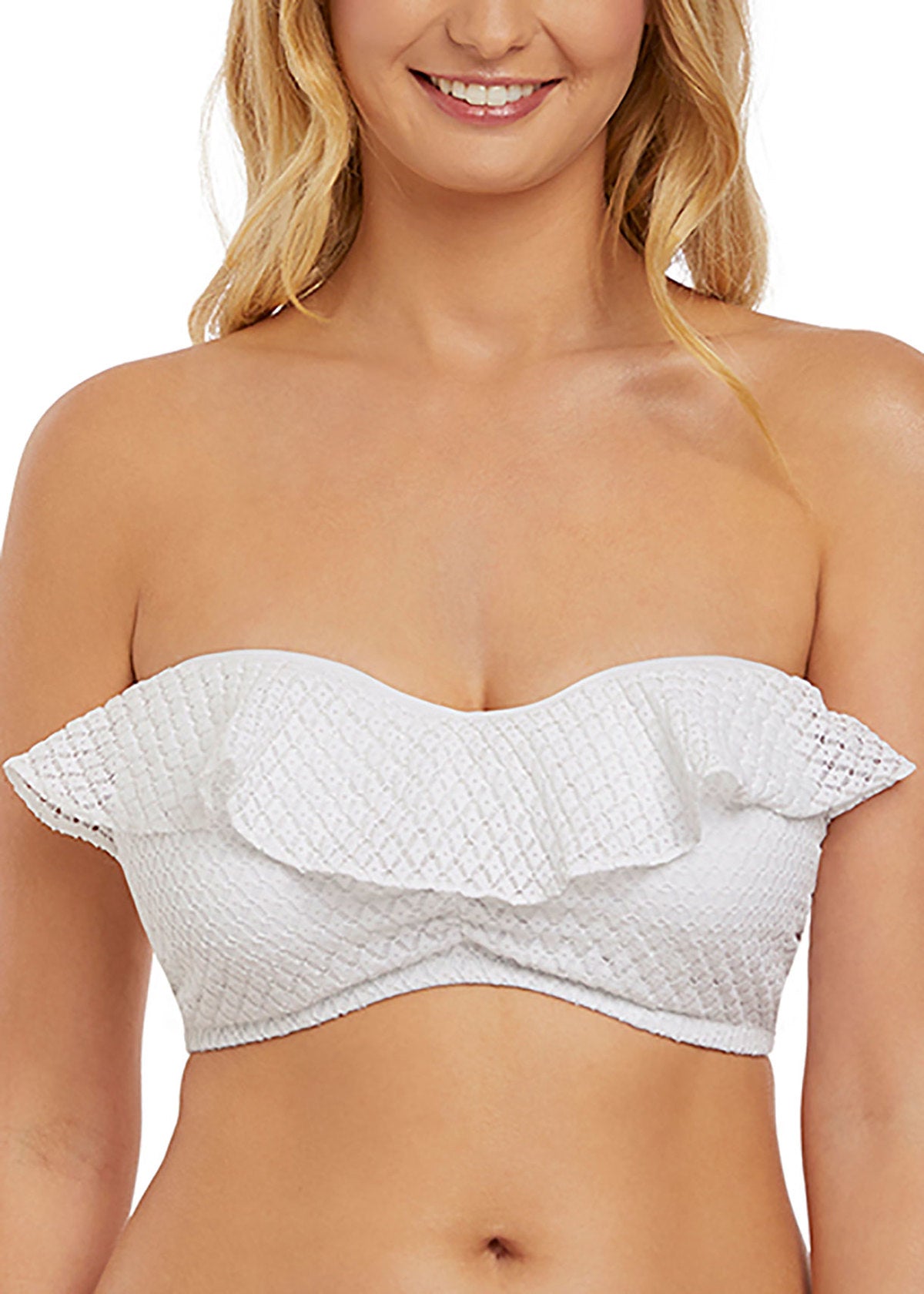 Make the Bohemia Bandeau Bikini Top your new swimwear staple, the White crochet design showcases a decorative frill along the neckline for a boho inspired look. Ensuring you're fully supported the Bandeau style features lightly padded foam cups and detachable, multiway straps to wear your own way. Available in cup sizes C - G.