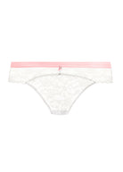 Complete your lingerie look with the Offbeat Brazilian in White, crafted with stretch lace at the front and back with a contrasting grey waistband. Offering lower coverage, soft scalloped detailing and a pretty bow completes the look.