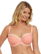 The Summer Haze Padded Half Cup Bra offers a stunning style in a timeless Blush colourway with gorgeous semi sheer detailing. Soft foam padded cups and a low cut neckline provides definition, shape and uplift in cup sizes C - GG.