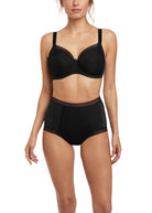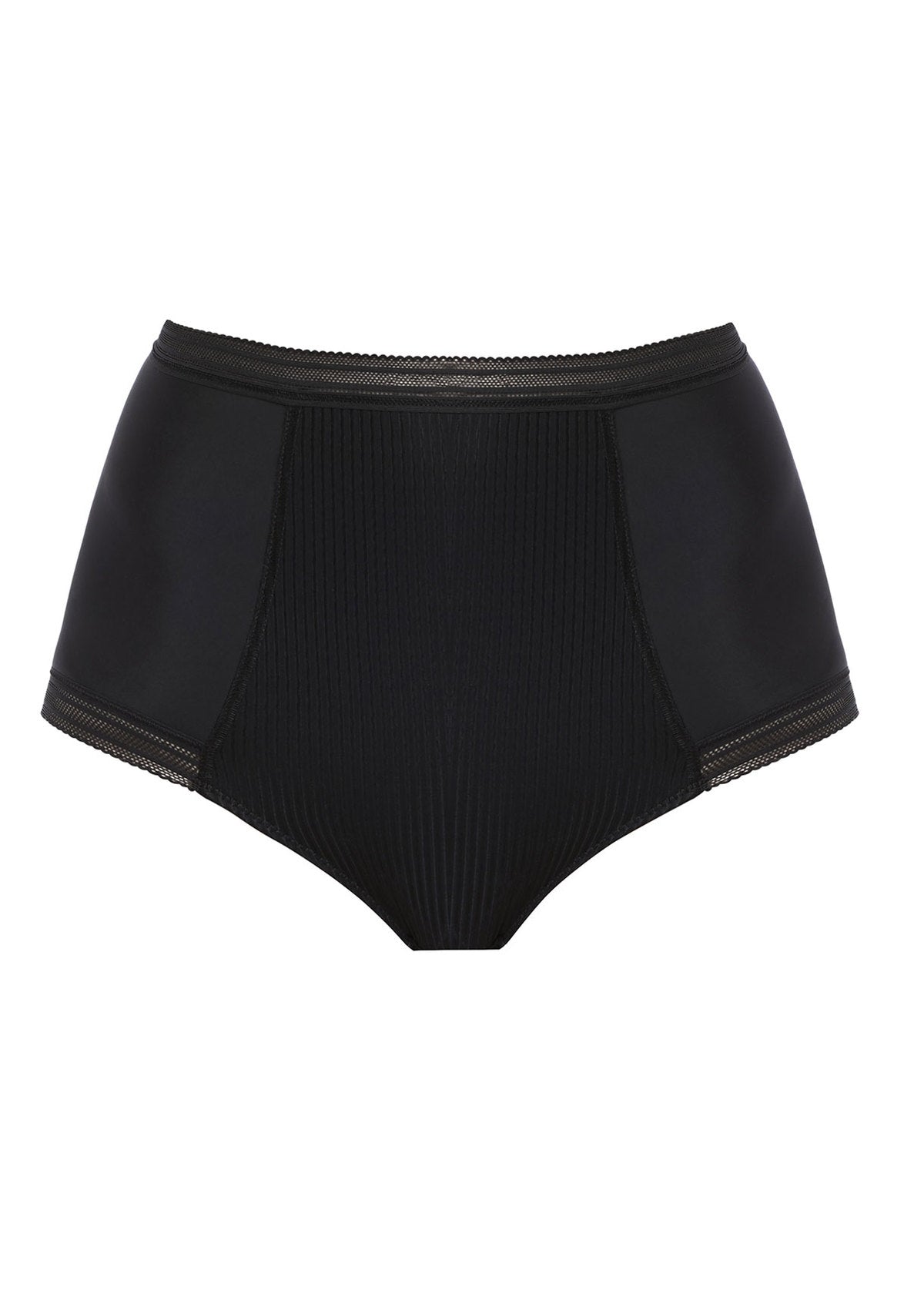 Complete the timeless Fusion lingerie collection with the High Waist Brief in Black, designed from soft fabrics with a lined front panel for light control and a smoothing fit. Available in sizes XS - XXL.