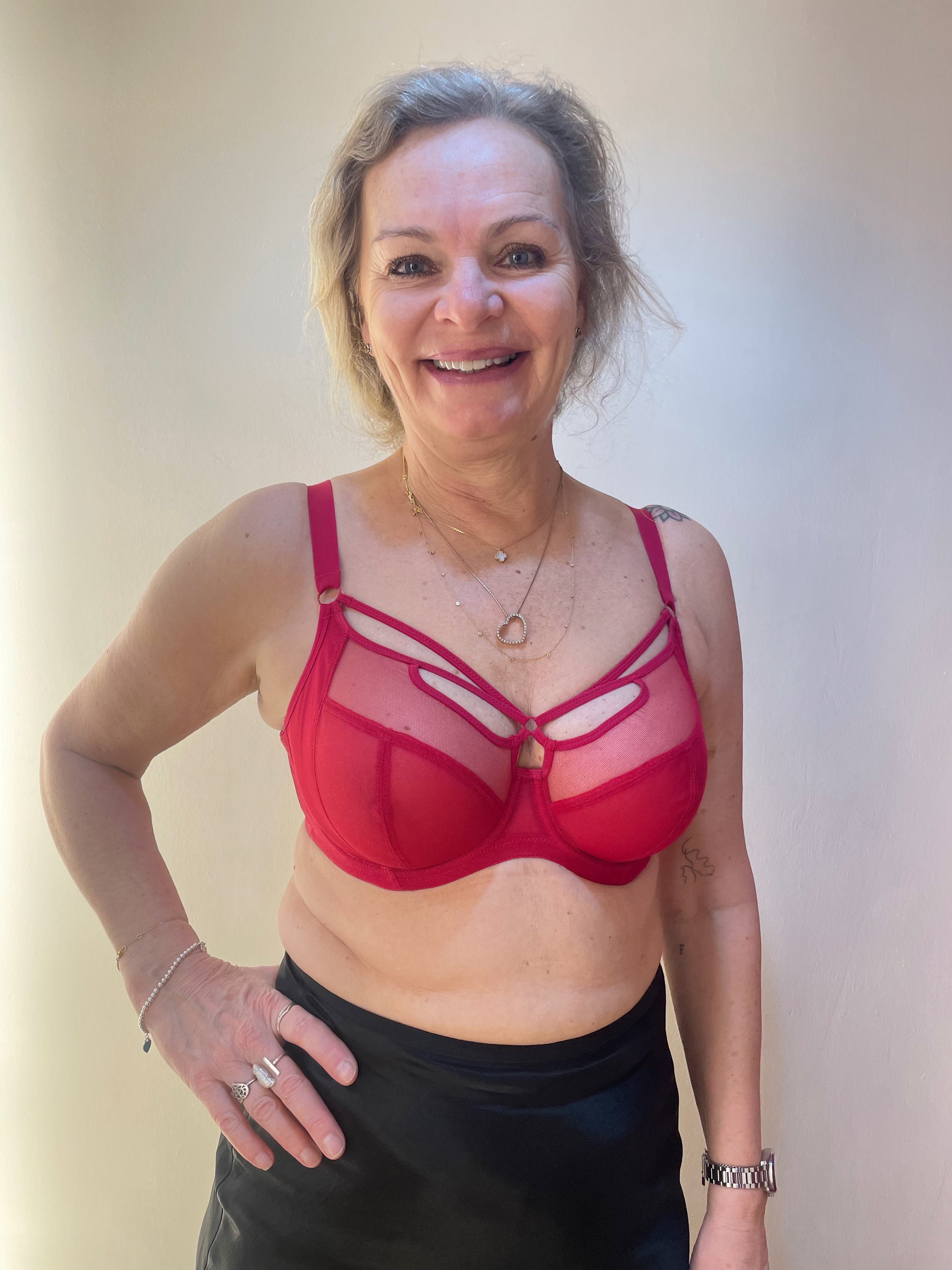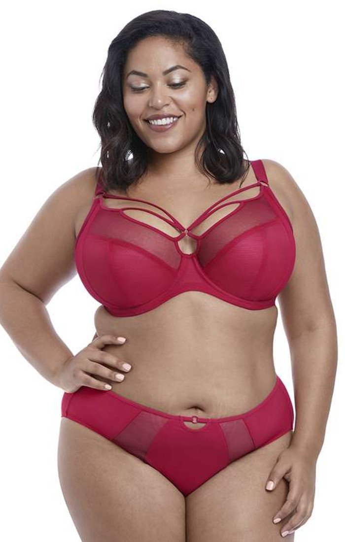 Simple yet striking, Sachi takes centre-stage with the Plunge Bra in a Signature Ruby colourway. The bra showcases sheer and solid panelling with on-trend strap detailing, designed to be seen and emphasise cleavage. A three piece cup offers forward shape and uplift.