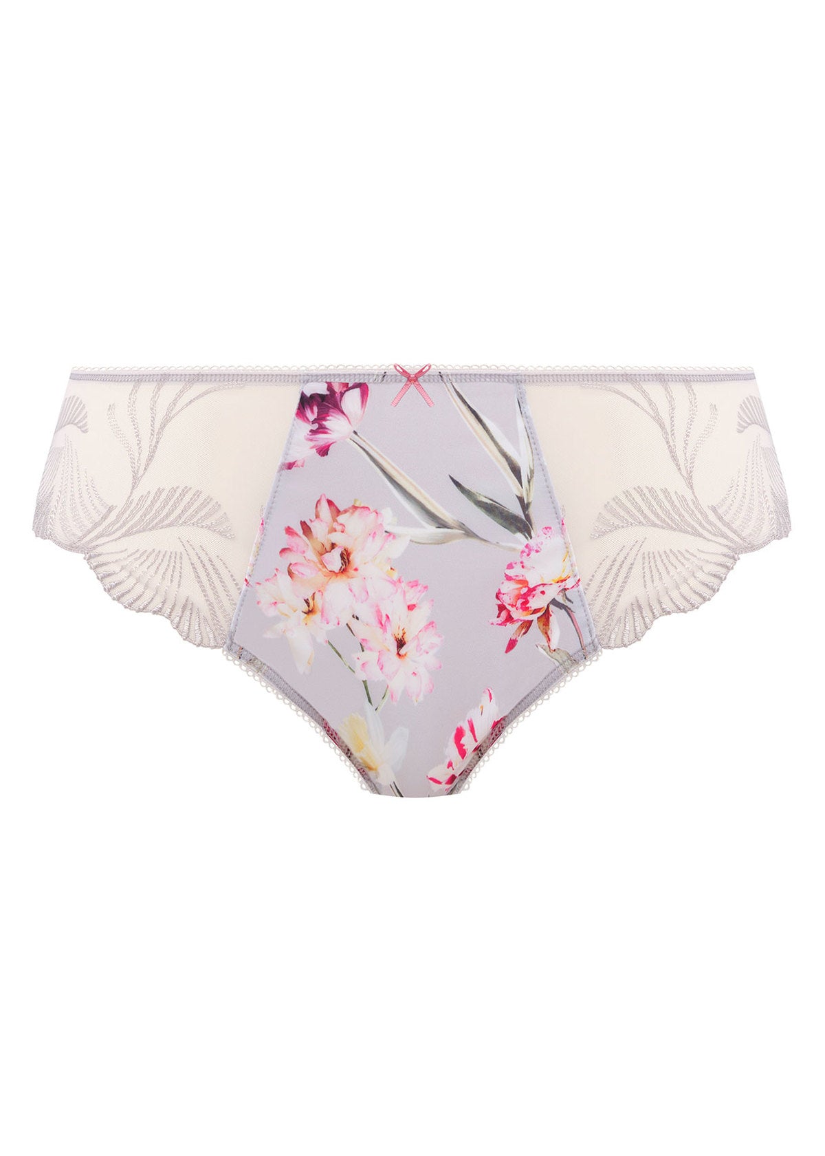 Achieve ethereal elegance with the Skylar Brief in Silver, featuring Austrian-designed embroidery along the front leg complemented by a soft print of tulip blooms in a palette of soft pastel tones. Soft handle fabric ensures effortless all day comfort.