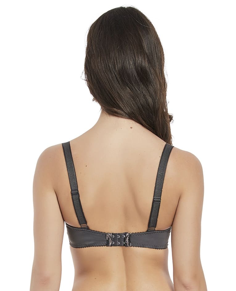 The Angelina collection by Fantasie is a captivating blend of high-end sophistication and romantic allure. Created exclusively for the renowned brand Fantasie, it features Swiss embroidery with opulent floral designs on a stunning dark grey tulle. The collection is finished with charming details such as dual-toned bows, elegant rhinestones, and picot edging that accentuate the delicate contours of the lingerie.