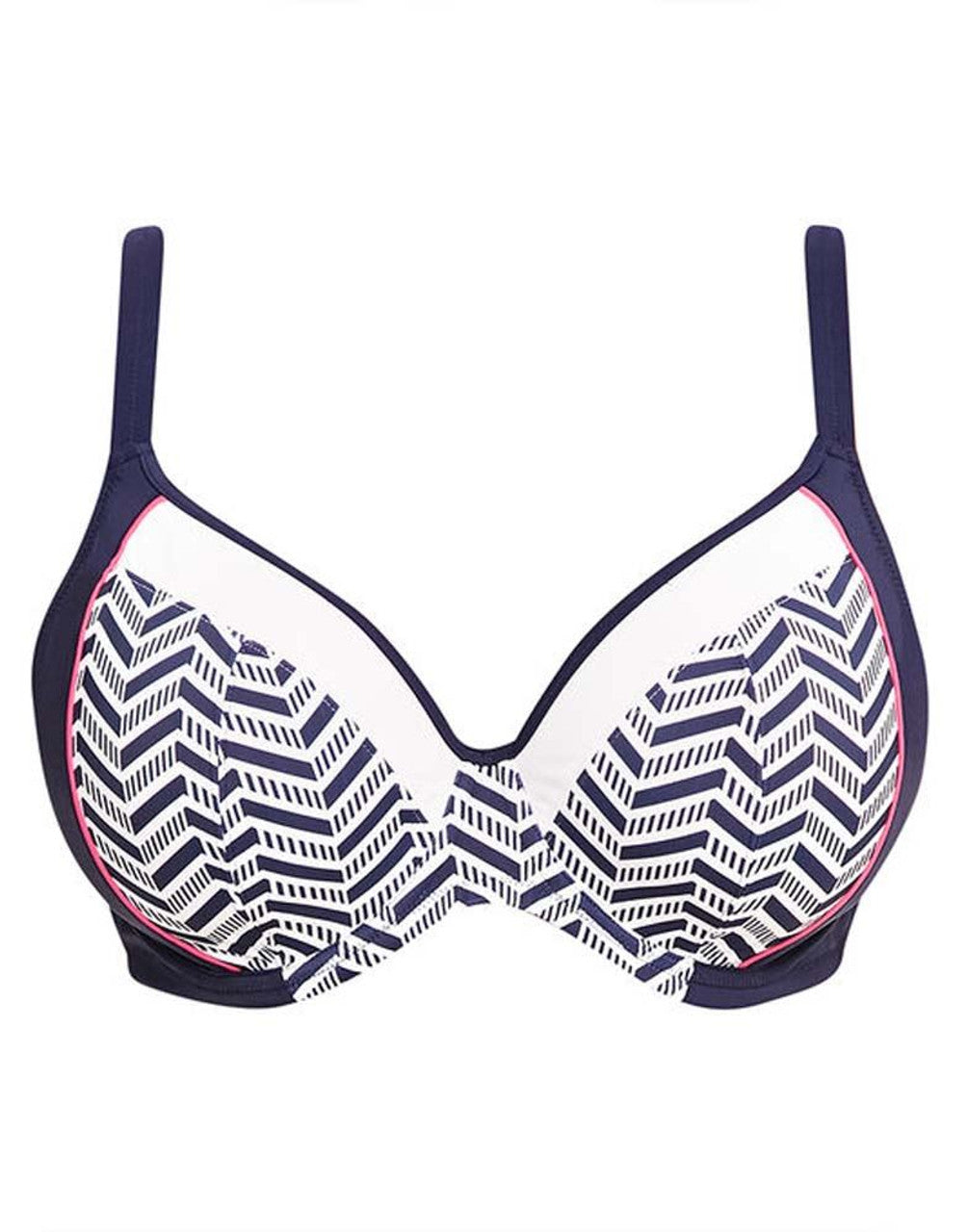 Introducing a nautical theme with the Elomi Chevron collection. This underwired Bikini Top features a plunge neckline and multiway straps which can be styled into shoulder straps, a halter neck or cross over the back for increased hold.
