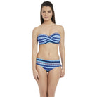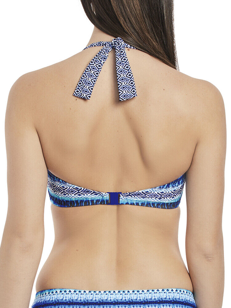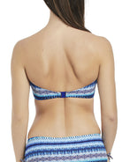 La Manga by Fantasie, a bold and beautiful mix and match swimwear collection featuring two on-trend geometric prints and vibrant shades of blue, perfect for relaxing by the beach or pool. This strapless bandeau bikini top features lightly padded cups made from light foam, stylish twist detail on the front and a clasp to fasten at the back. Also including scarf tie strap which is detachable-perfect for all-day comfort.