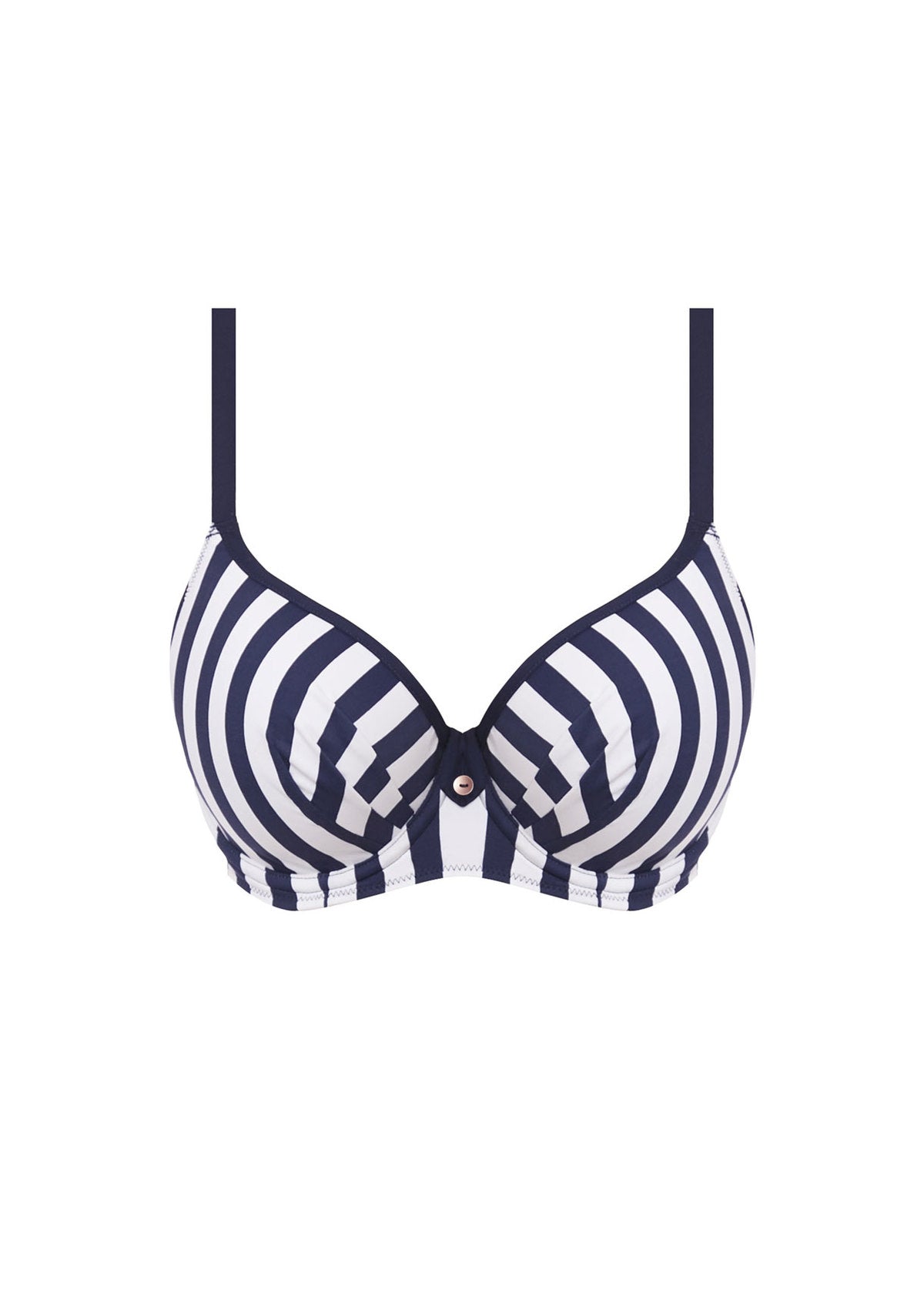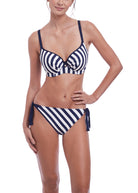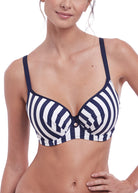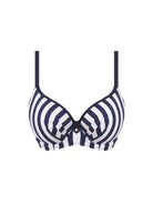 Update your suitcase with Fantasie's Côte D'Azur swimwear collection. The Moulded Bikini Top provides a contemporary take on the classic nautical trend with a chic stripe in Ink and white. Moulded seam free foam cups flatter all bust shapes and provide perfect support in a D - G cup.