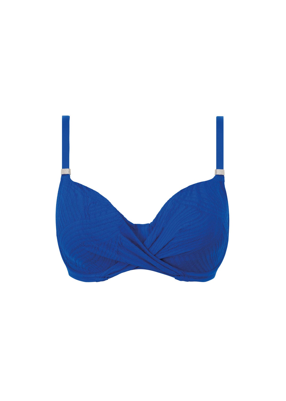 Find the ultimate support with the Ottawa Full Cup Bikini Top in Pacific Blue, featuring a flattering twist front detail with supportive side wings offering comfort and anchorage. Complete with fixed fully adjustable shoulder straps and metallic detailing. Available in cup sizes D - H.