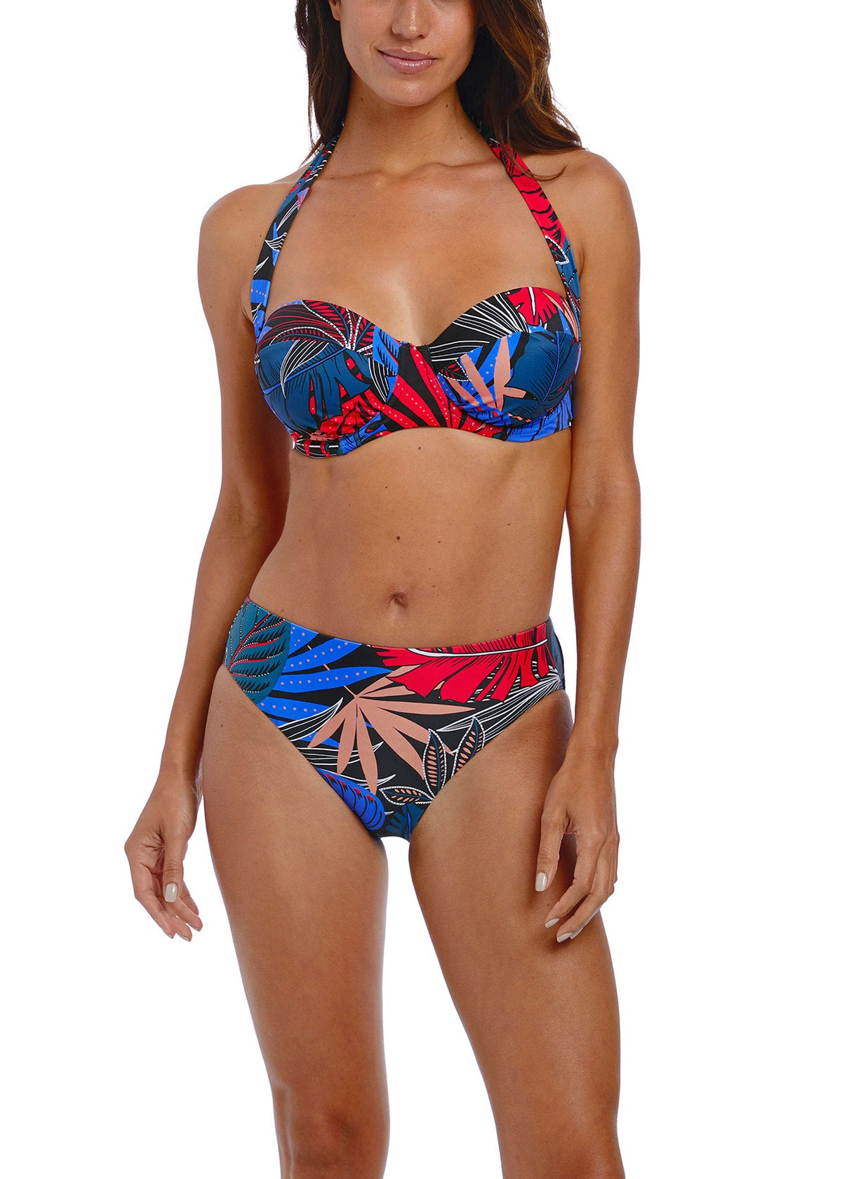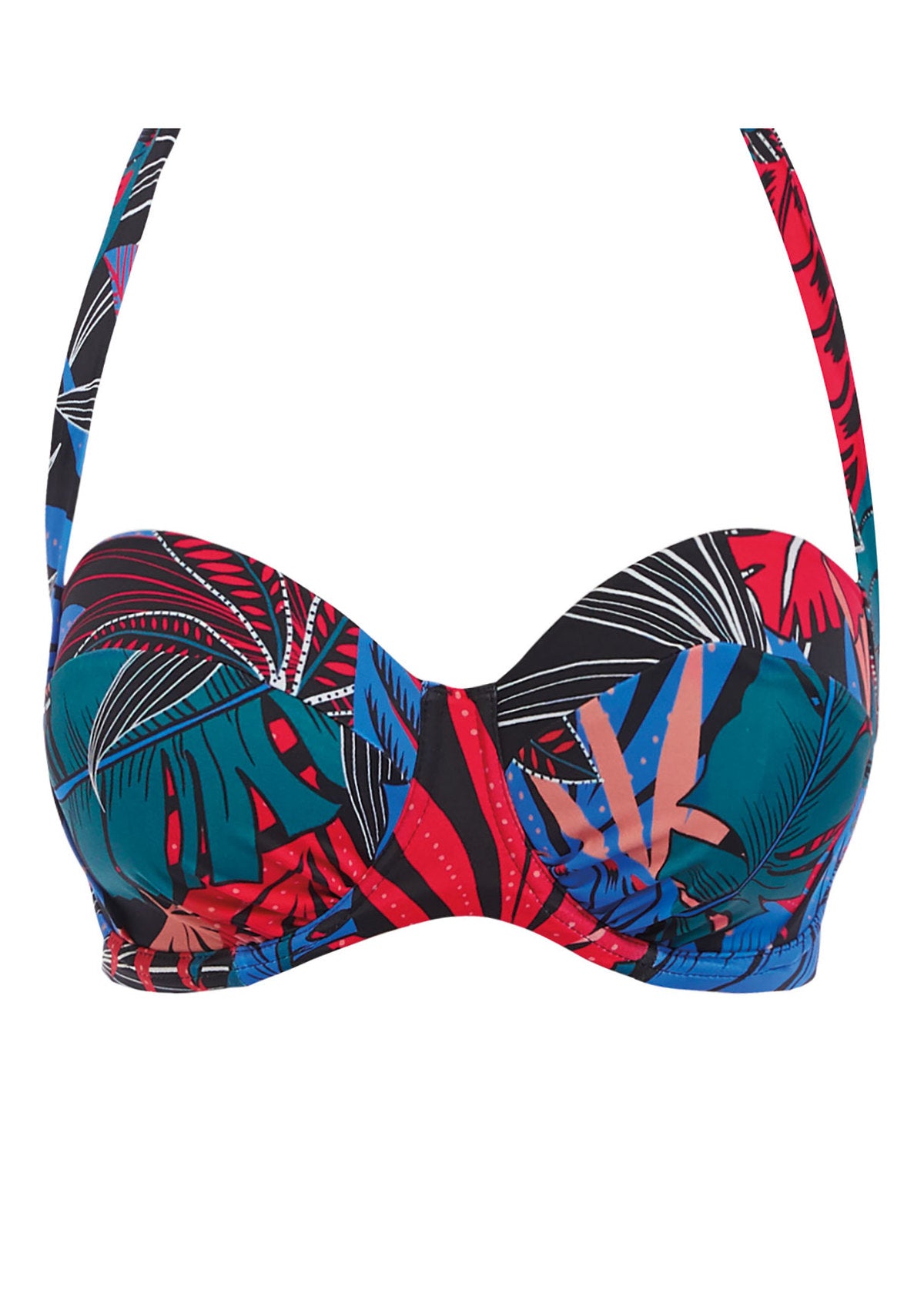 Uncover Fantasie’s Monte Cristi Bandeau Bikini Top, making the perfect holiday accompaniment giving your look a splash of colour, crafted from an exotic botanic print fabric. The Bandeau offers support with a smooth foam cup and is complete with wide multiway ties that can be worn a number of ways, from strapless to halter to an on-trend crossover style.