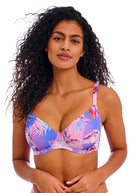 Hot on the scene for SS24, Miami Sunset is full of energy with oversized palms against a rich ombre base. Vibrant cassis, rich sangria and deep ocean blues clash against pops of zesty orange, soft cornflower blues and ashy lilac tones. Choose from one of our must-have styles including our cheeky High Leg Brief; a real winner with our Freya girls.