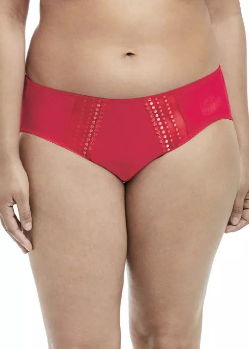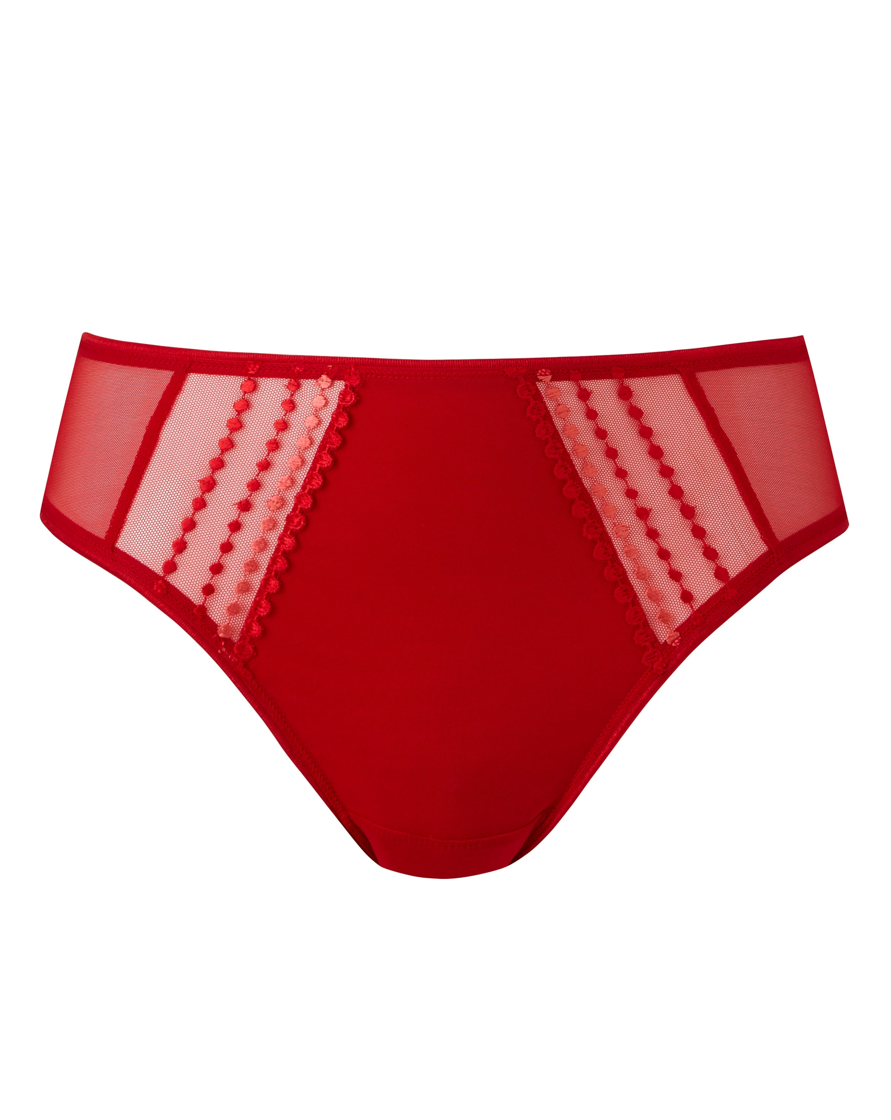 The Matilda Brief offers contemporary styling in a classic brief shape. The front showcases stunning rows of beaded embroidery that contrast against a Flame base, while the back is completely sheer.